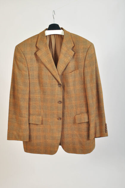 Step into timeless 90s sophistication with this Vintage SIR checkered blazer jacket. Crafted from a 32% wool blend, this jacket brings a classic tailored look with a subtle check pattern—perfect for adding a retro touch to your wardrobe.