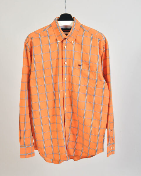 Vintage 00s State of Art Orange Checkered Oversized Shirt – M