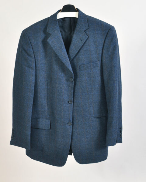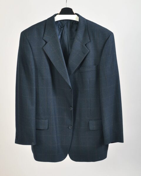 Vintage 80s Navy Checkered Wool Blazer by Licona | XL–XXL