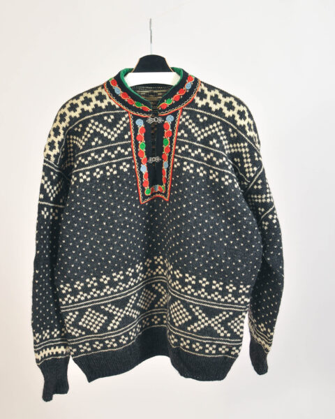 Vintage 90s Norwegian Black & White Wool Sweater – XL