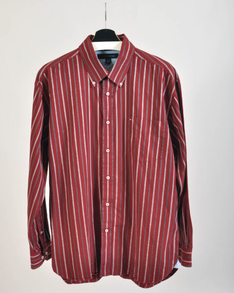 Vintage 00s Tommy Hilfiger Striped Maroon Shirt | Size L