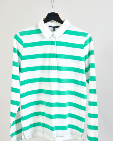 Vintage 00s Gant Striped Long Sleeve Polo Shirt Size M