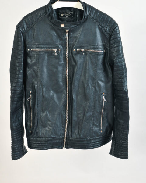 Vintage 00s Faux Leather Racer Jacket in Black – Size XL