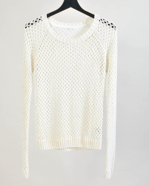 Vintage 00s Sheer Crocheted White Top | Long Sleeve S–M