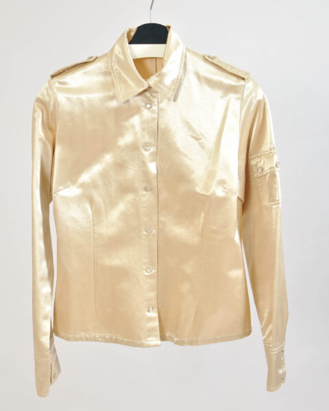 Vintage 00s Gold Shirt | Y2K Metallic Blouse | Size M–L
