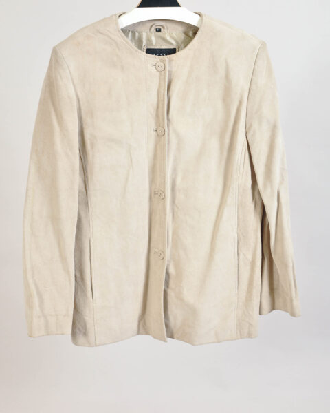 Vintage 90s Beige Suede Leather Jacket | Joy | Size (L–XL)