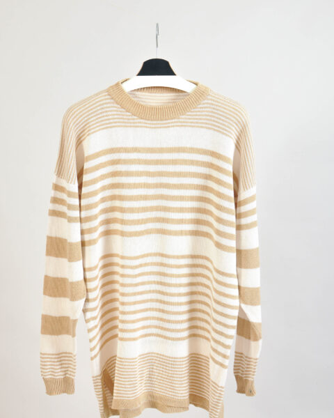 Vintage 90s Oversized Striped Beige Jumper | Unisex M–XL