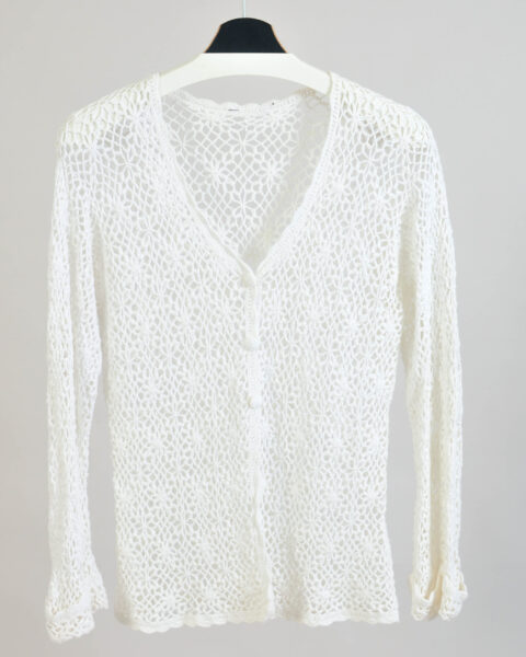 Vintage 00s Handmade White Crochet Cardigan | M–L Fit