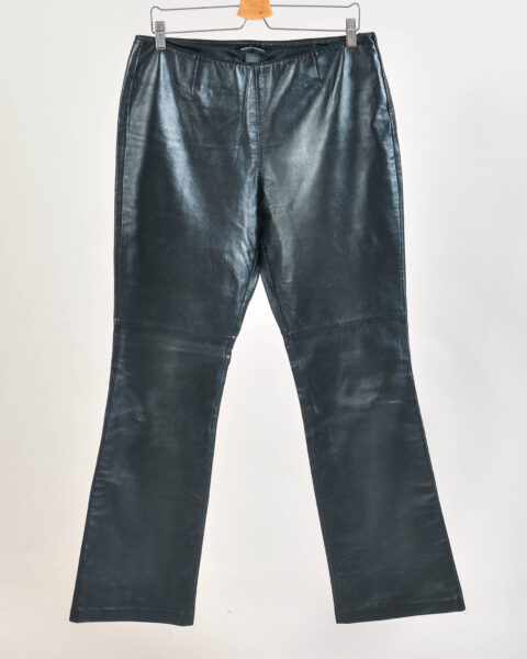 Vintage 00s Real Leather Flare Trousers in Black – Size 12