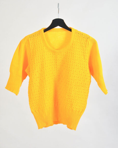 Vintage 70s Yellow Knitted Top | Fits XS–M | Retro Style