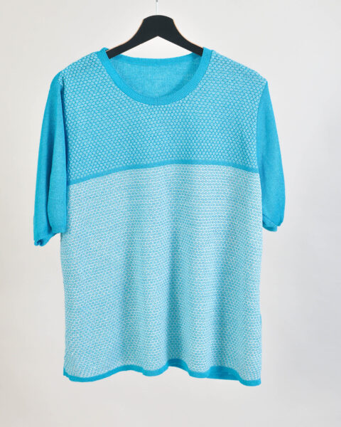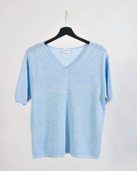 Vintage 00s Baby Blue Knitted T-Shirt | Biaggini | M–L Fit