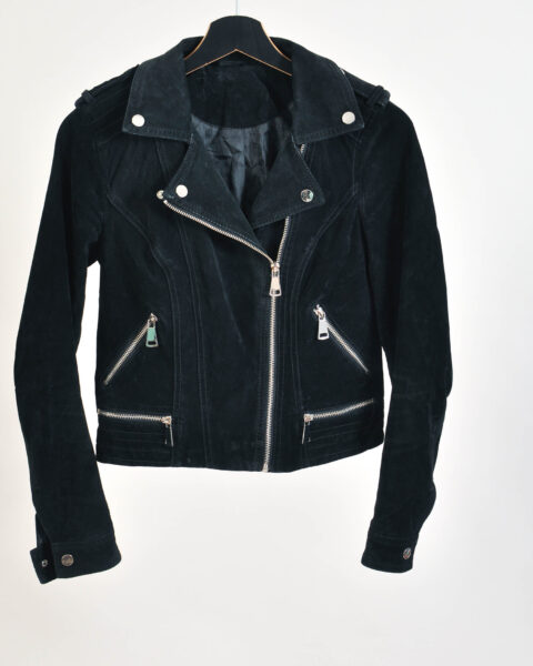 Vintage 00s Suede Leather Biker Jacket in Black – Size XS/S