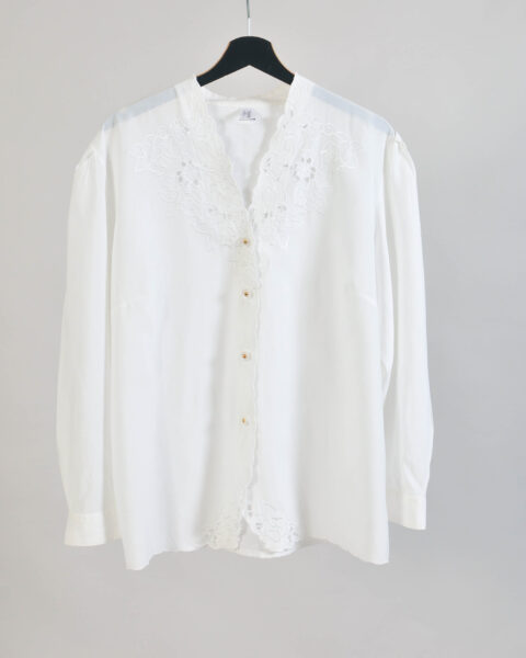 Vintage 80s White Oversized Blouse | Fits M to XXL