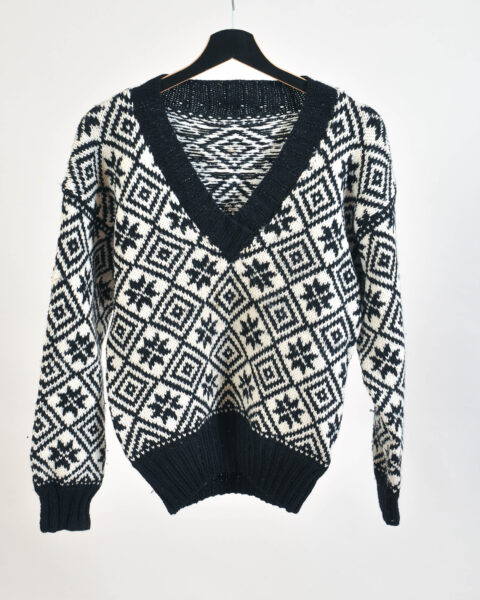 Vintage 90s Handmade Knitwear Jumper – Black & White, S-M