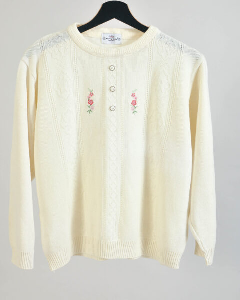 Vintage 80s Embroidered White Jumper – Merry Gold M-L Fit