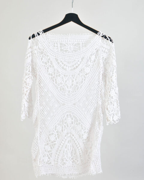 Vintage 90s White Sheer Crocheted Cotton Top – One Size