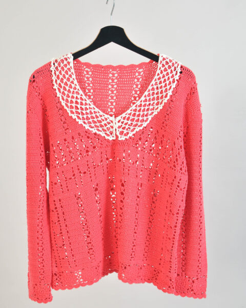 Vintage 90s Handmade Crocheted Pink Jumper – M/L