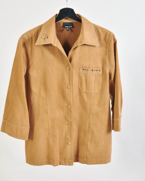 Vintage 00s Beige Faux Suede Blouse – S-M Fit