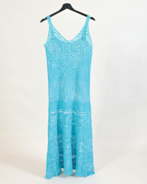 Vintage 00s Crocheted Maxi Dress – Handmade Boho Y2K | S–M