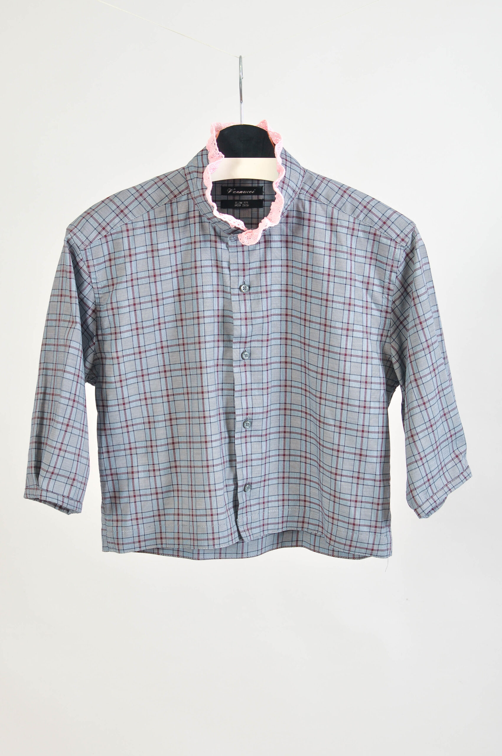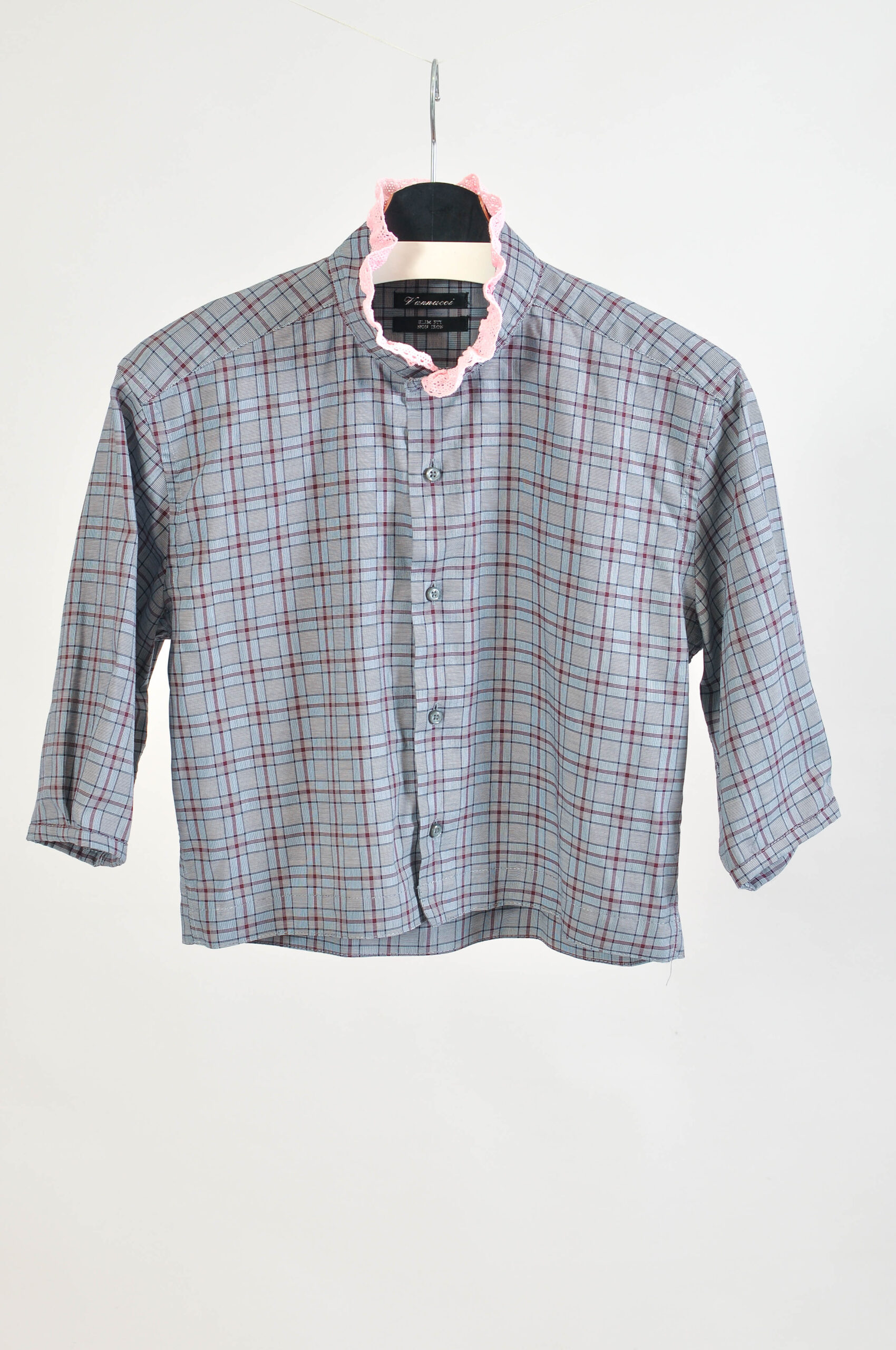 This upcycled vintage shirt is a one-of-a-kind piece, handmade from reworked vintage materials. Crafted with care and creativity, it features a cropped silhouette with a modern edge—perfect for layering or styling on its own. Best fits a size S (please check the measurements below).