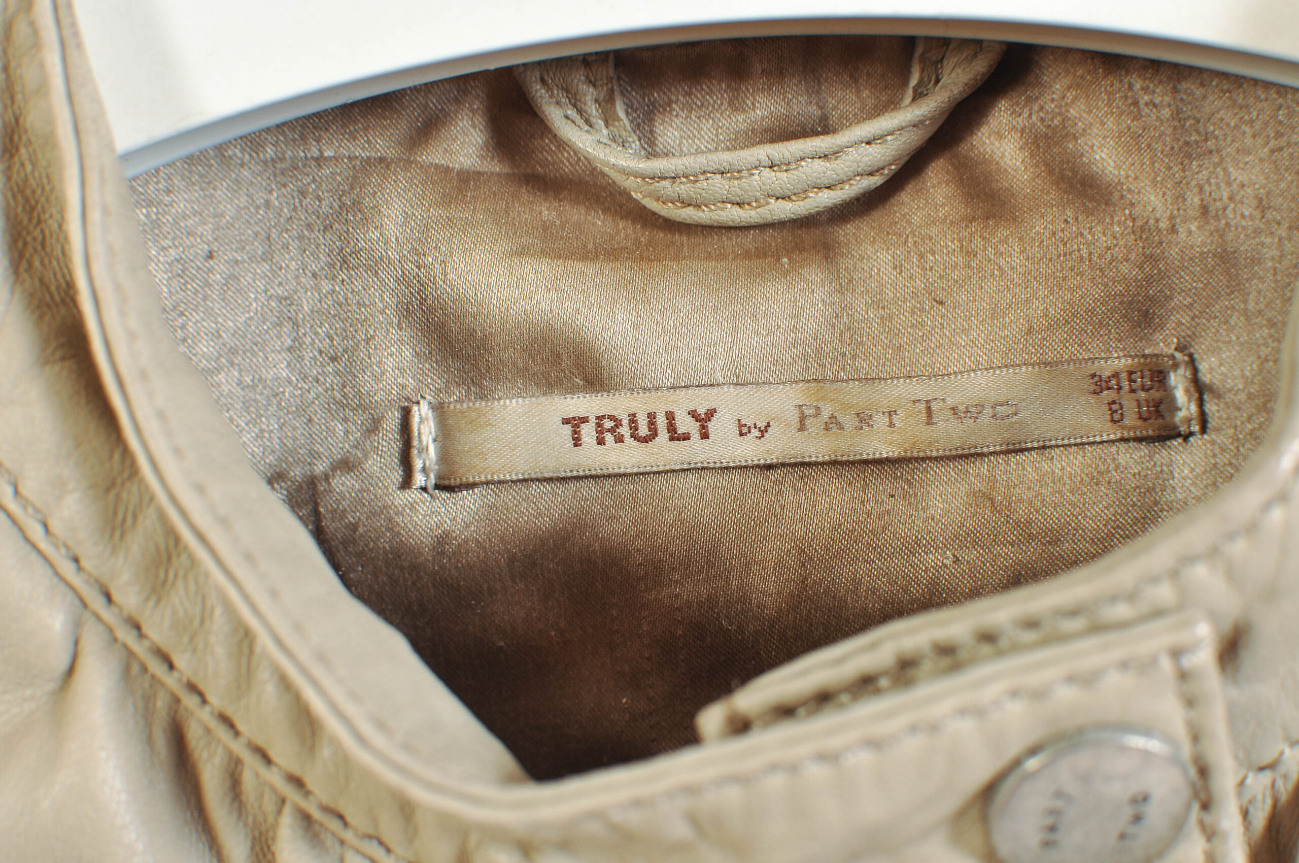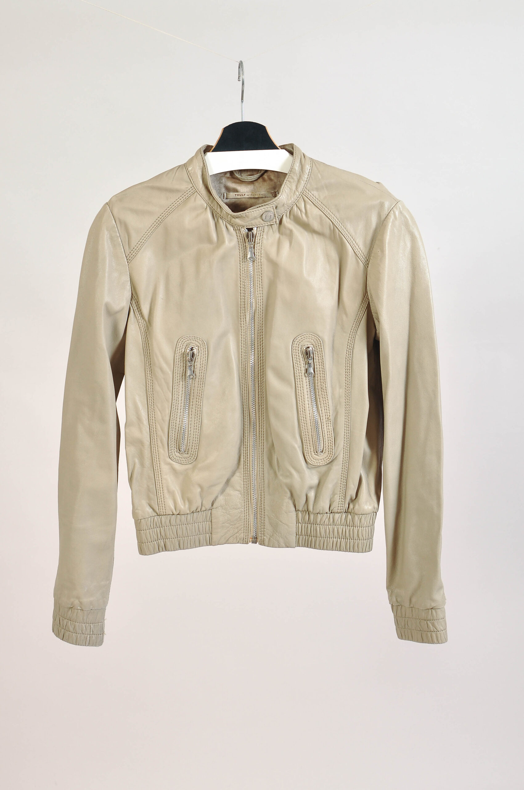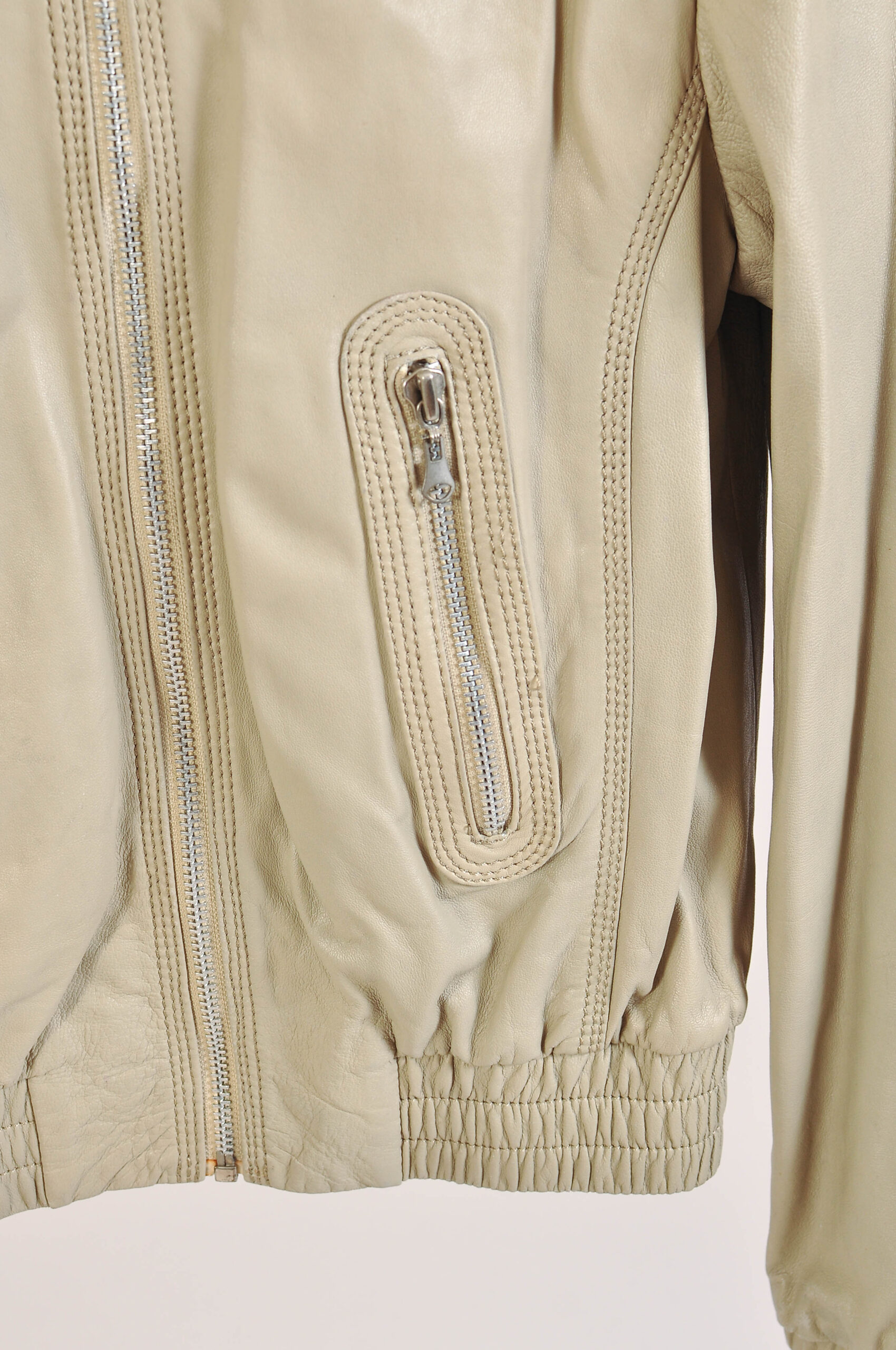Sleek vintage 00s real leather racer jacket by Part Two in a soft beige tone, featuring a clean, fitted silhouette inspired by classic racing styles. The genuine leather construction adds durability and a premium feel, while the neutral color makes it easy to style.