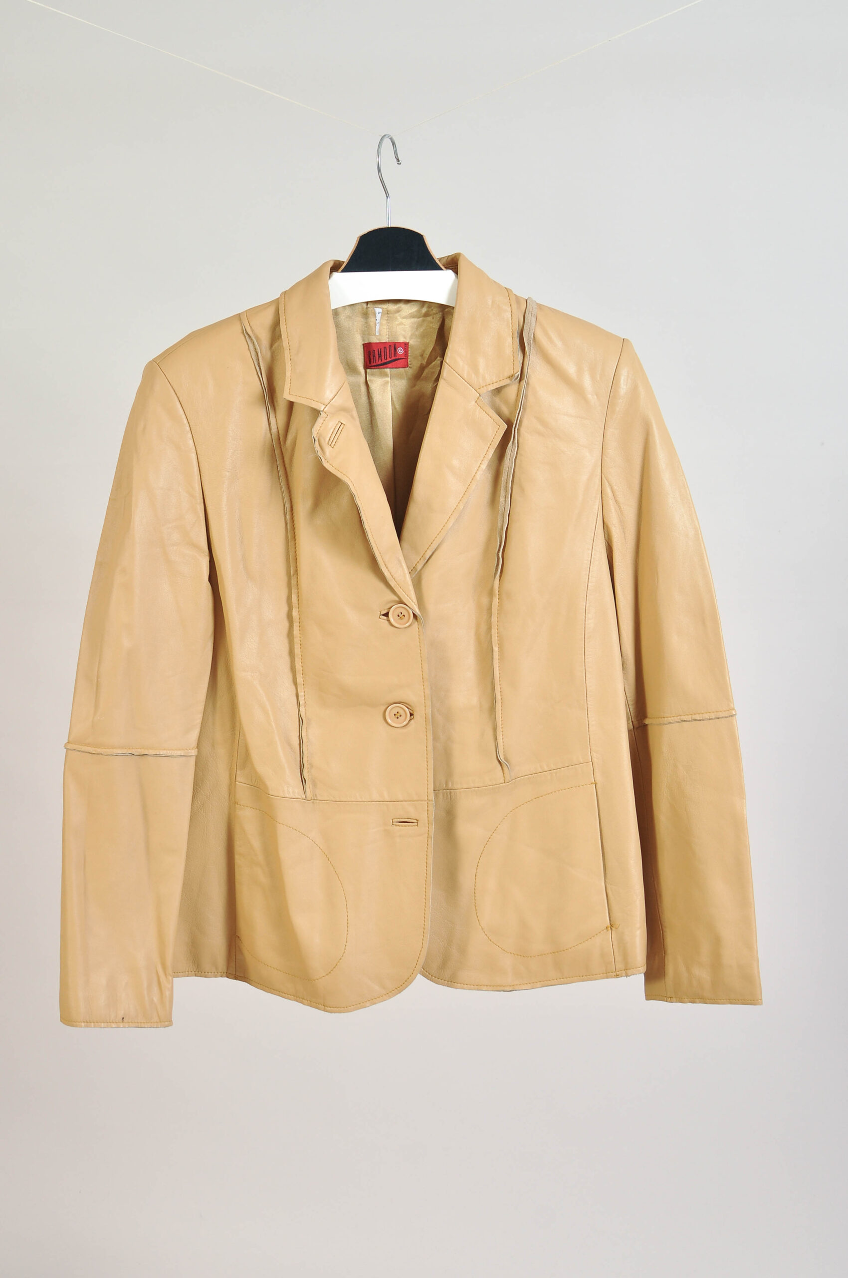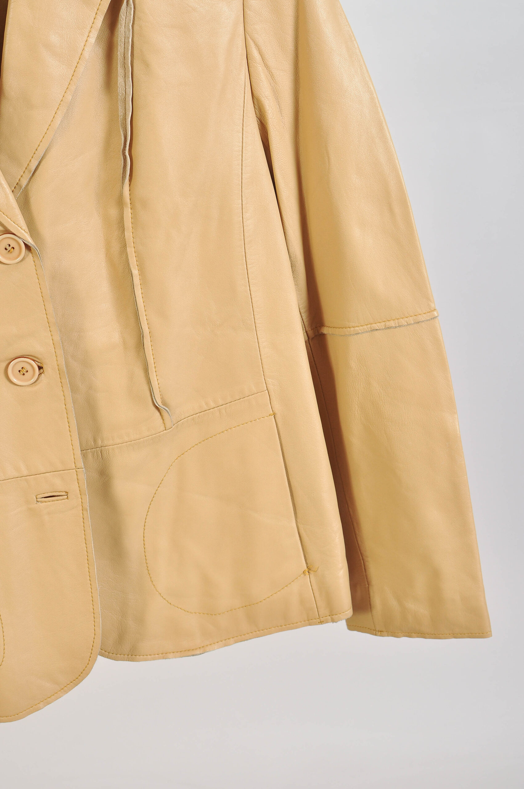 Elegant and timeless vintage 00s beige real leather blazer jacket by SAMOON featuring a clean tailored silhouette and soft premium leather. A refined piece that blends classic blazer structure with a modern Y2K aesthetic.