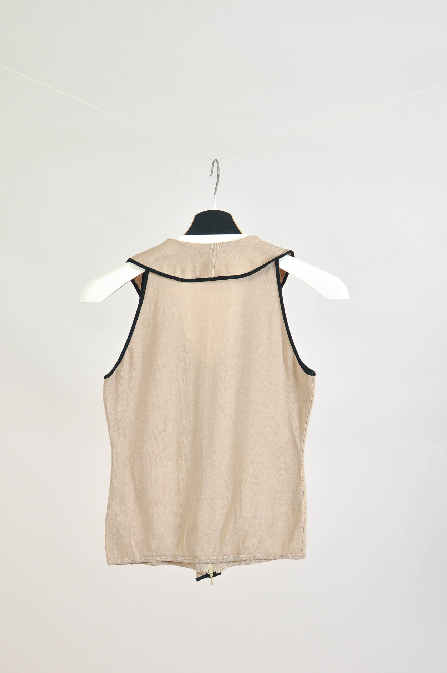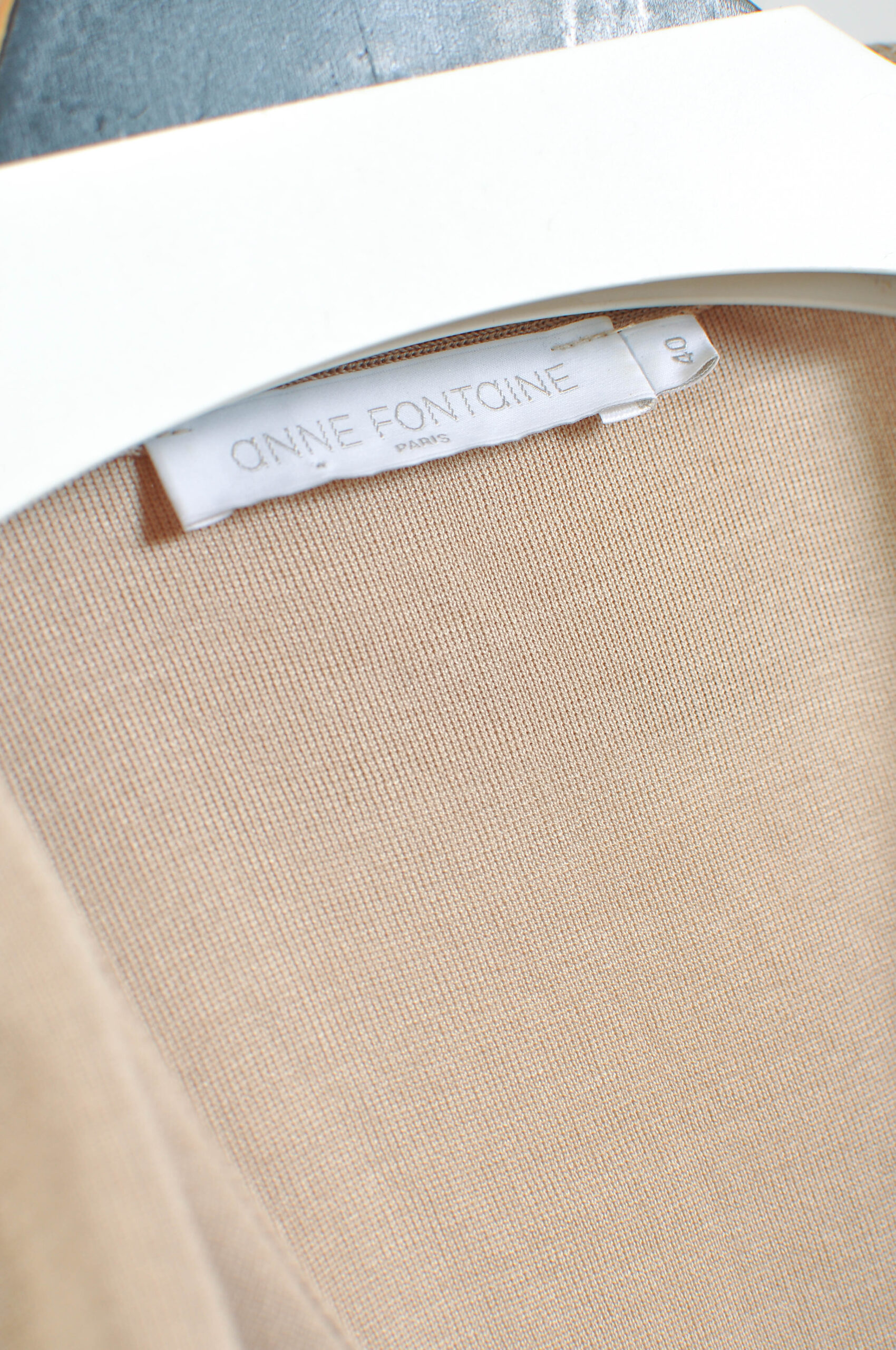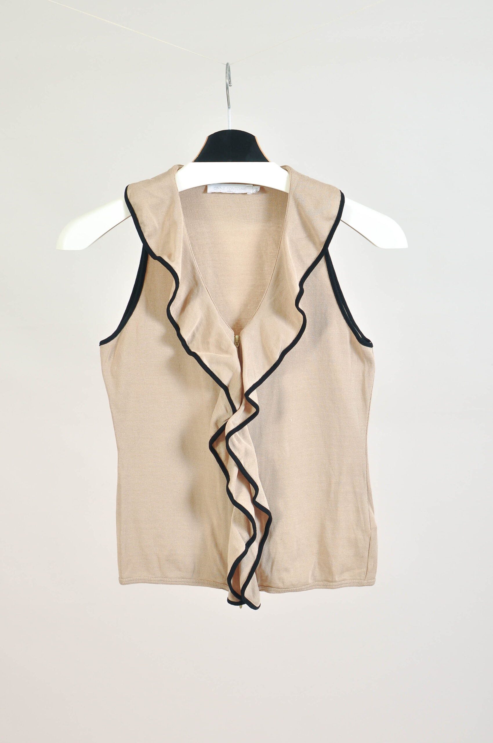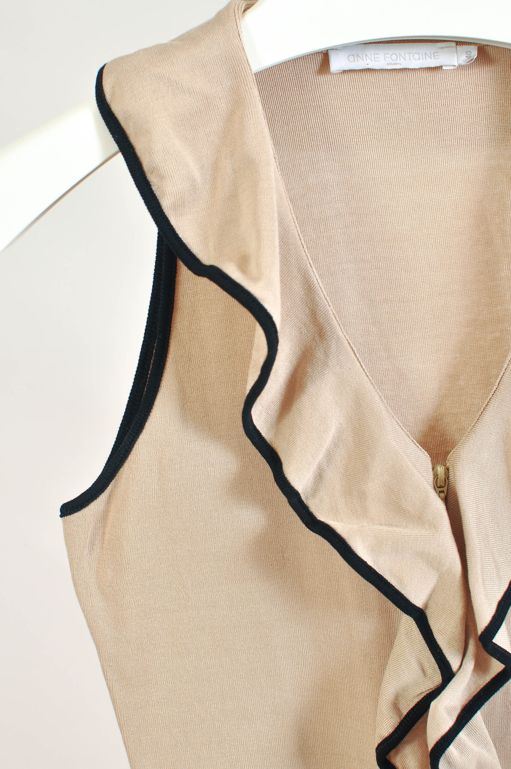 Elegant vintage 00s beige blouse with ruffles by Anne Fontaine featuring a feminine silhouette and delicate detailing. The soft neutral tone and refined ruffle accents make it a sophisticated wardrobe piece.