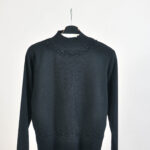 Vintage 00s black funnel neck jumper by Hongli. A timeless minimalist piece with a sleek funnel neckline, perfect for both casual and smart layering. Made from a soft cotton blend, it ensures comfort and everyday wearability.