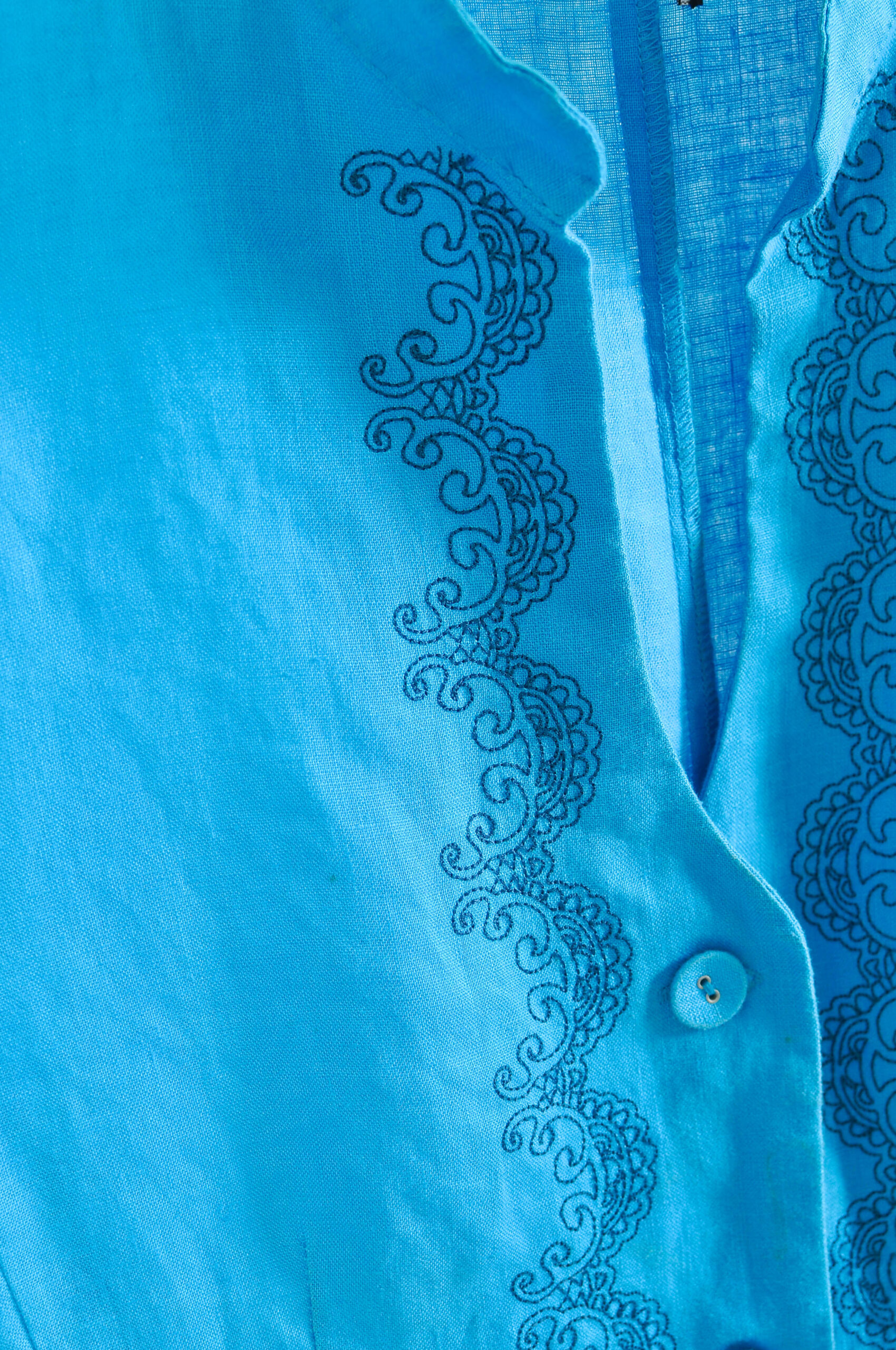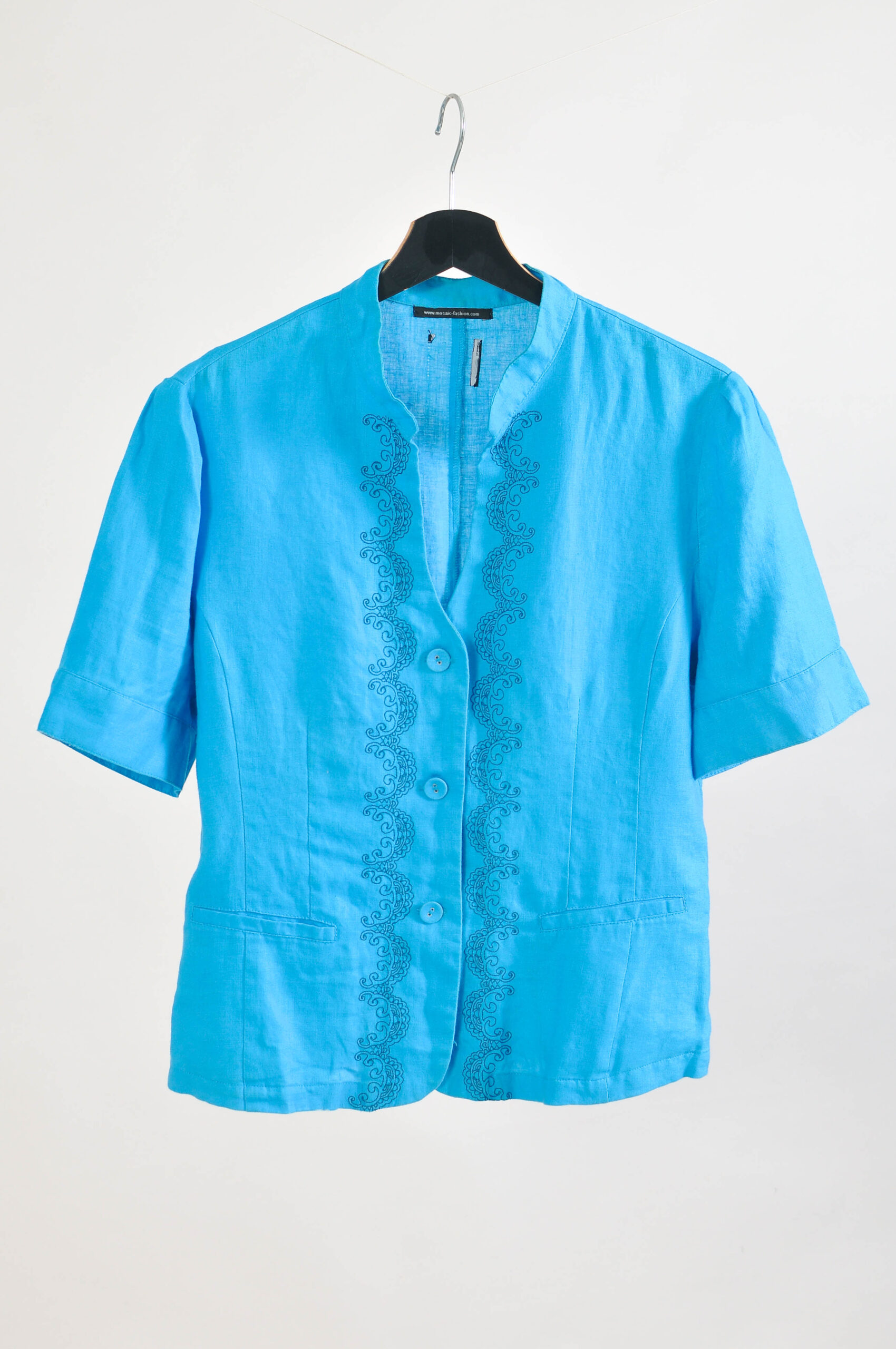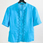 Vintage Y2K Blue Linen Blouse – Mosaic – L/XL