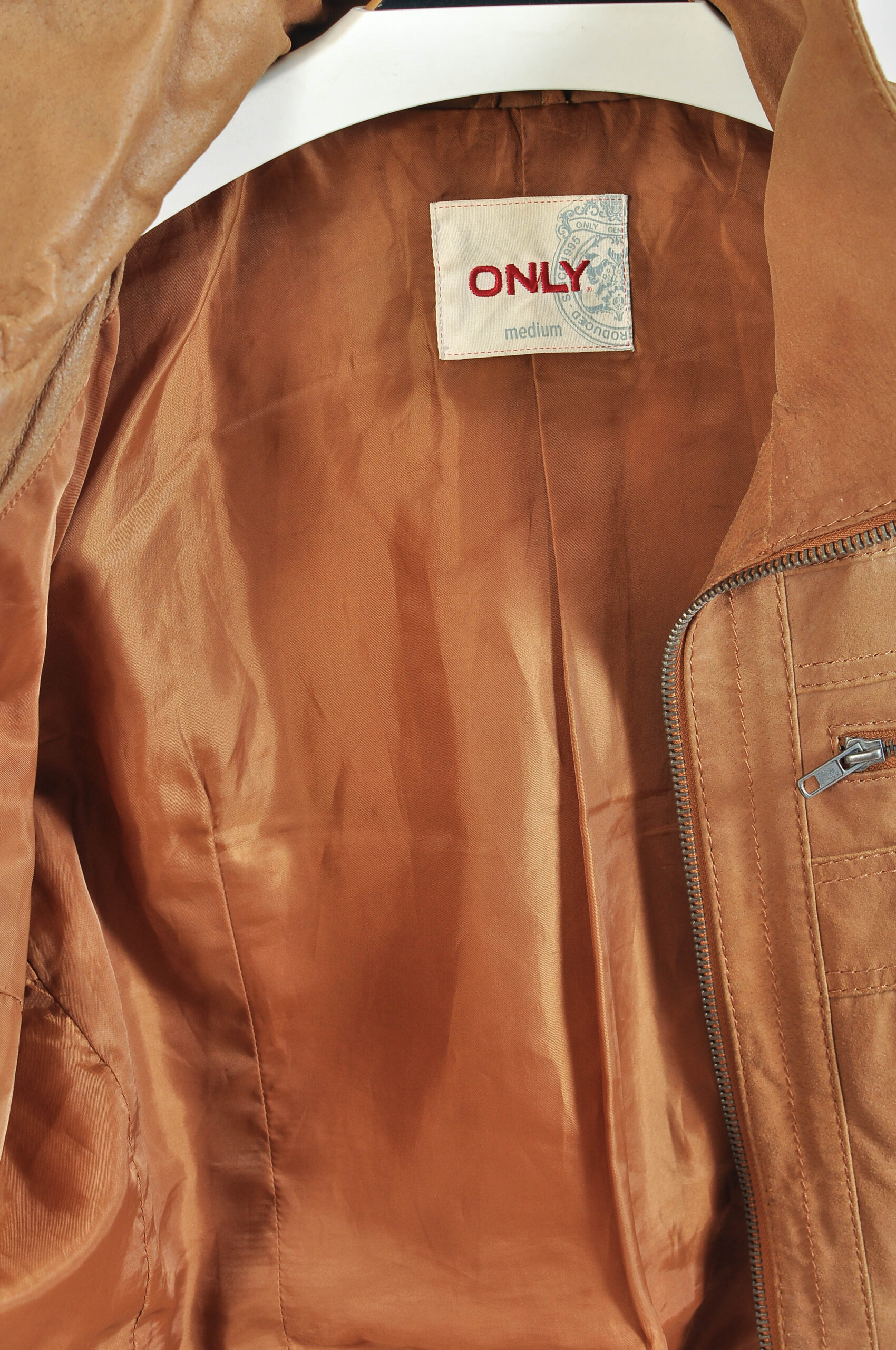 Vintage 00s brown suede leather jacket by Only. Size M (best fits S/M). Length 62 cm, pit to pit 48 cm. Made from genuine pig leather — timeless and soft vintage piece.