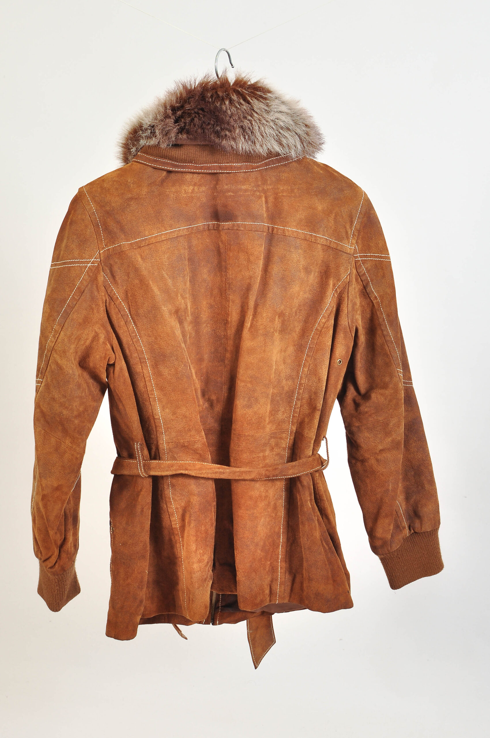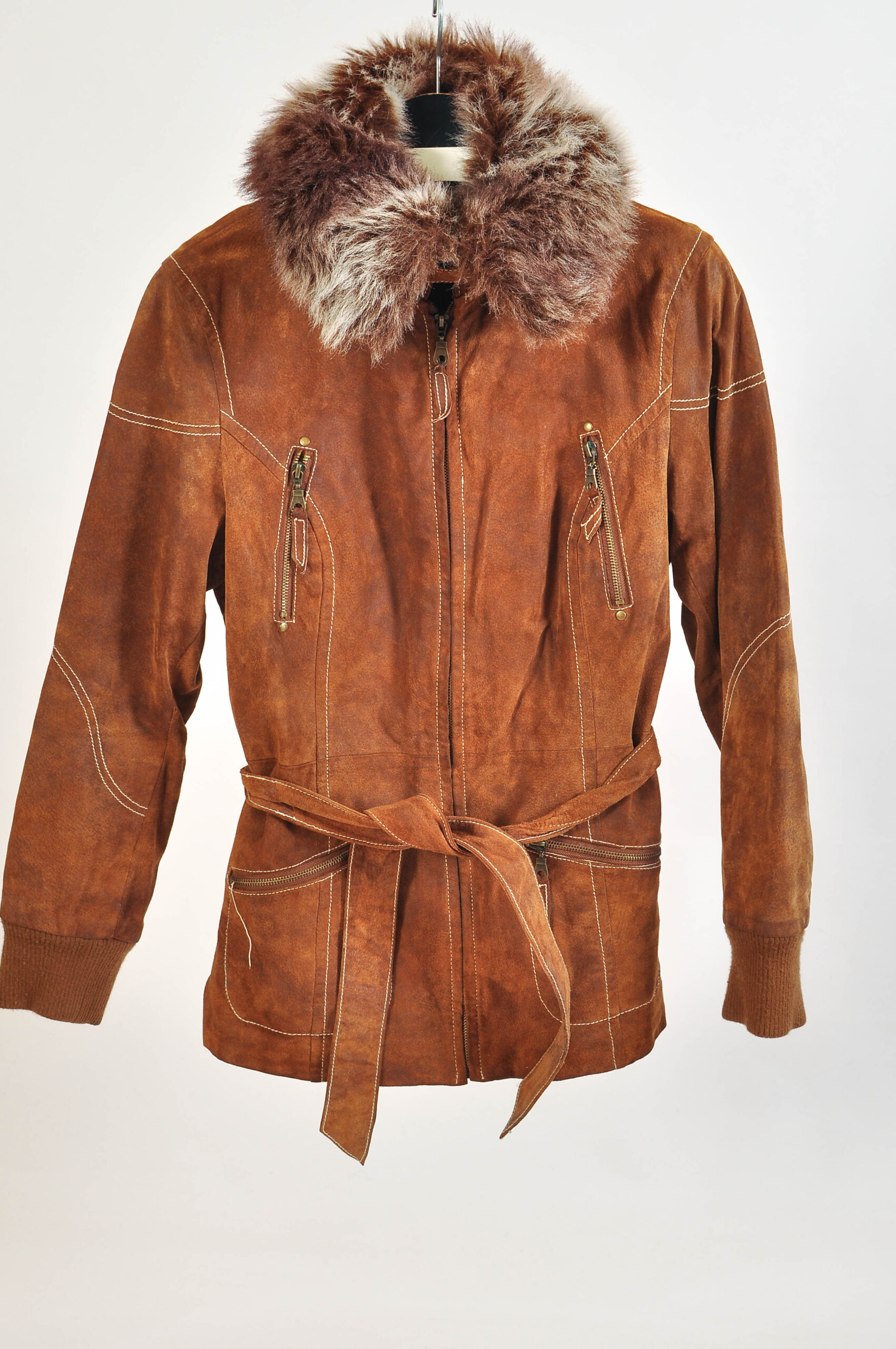 Elevate your outerwear collection with this vintage 2000s brown suede leather jacket from Soho New York. Crafted from high-quality suede leather, this jacket features a removable faux fur collar, giving you the versatility to style it with or without the cozy trim. A perfect blend of elegance and Y2K edge.