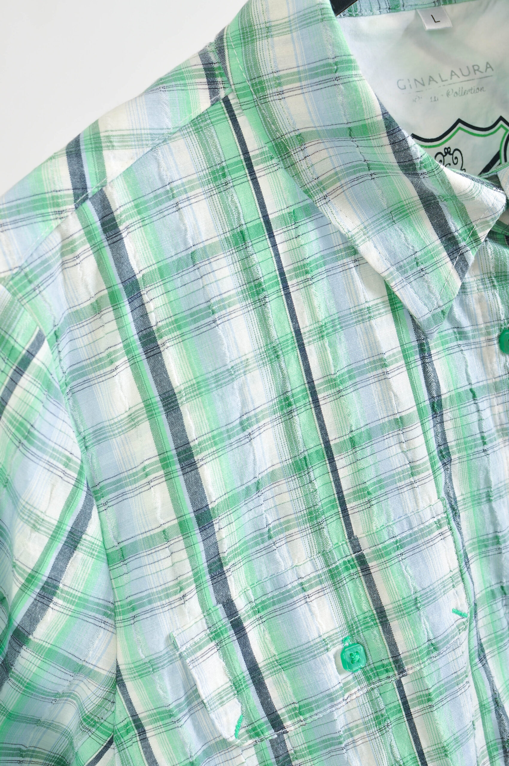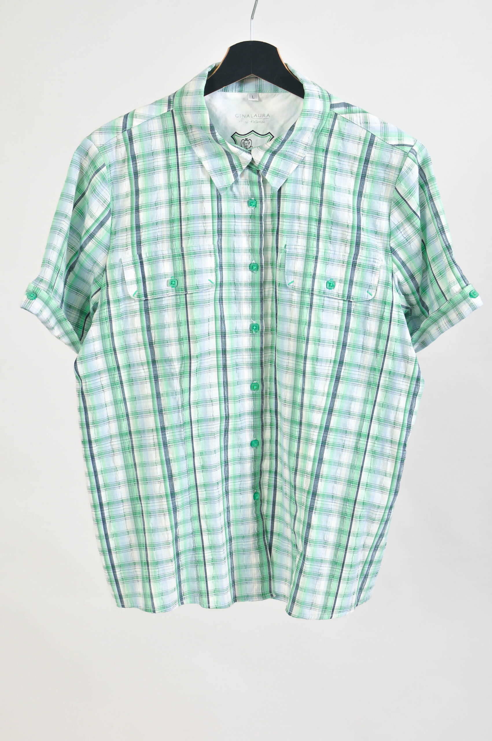 Add a touch of early 2000s charm to your wardrobe with this vintage 00s checkered shirt in a classic cut. Made by Gina Laura, it’s in very good condition, with minor signs of natural vintage wear as expected. A versatile piece to wear open over a tank or buttoned up with high-waisted jeans.