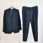 A sophisticated early-00s striped suit with an elegant dark blue tone — ideal for collectors of designer vintage tailoring.