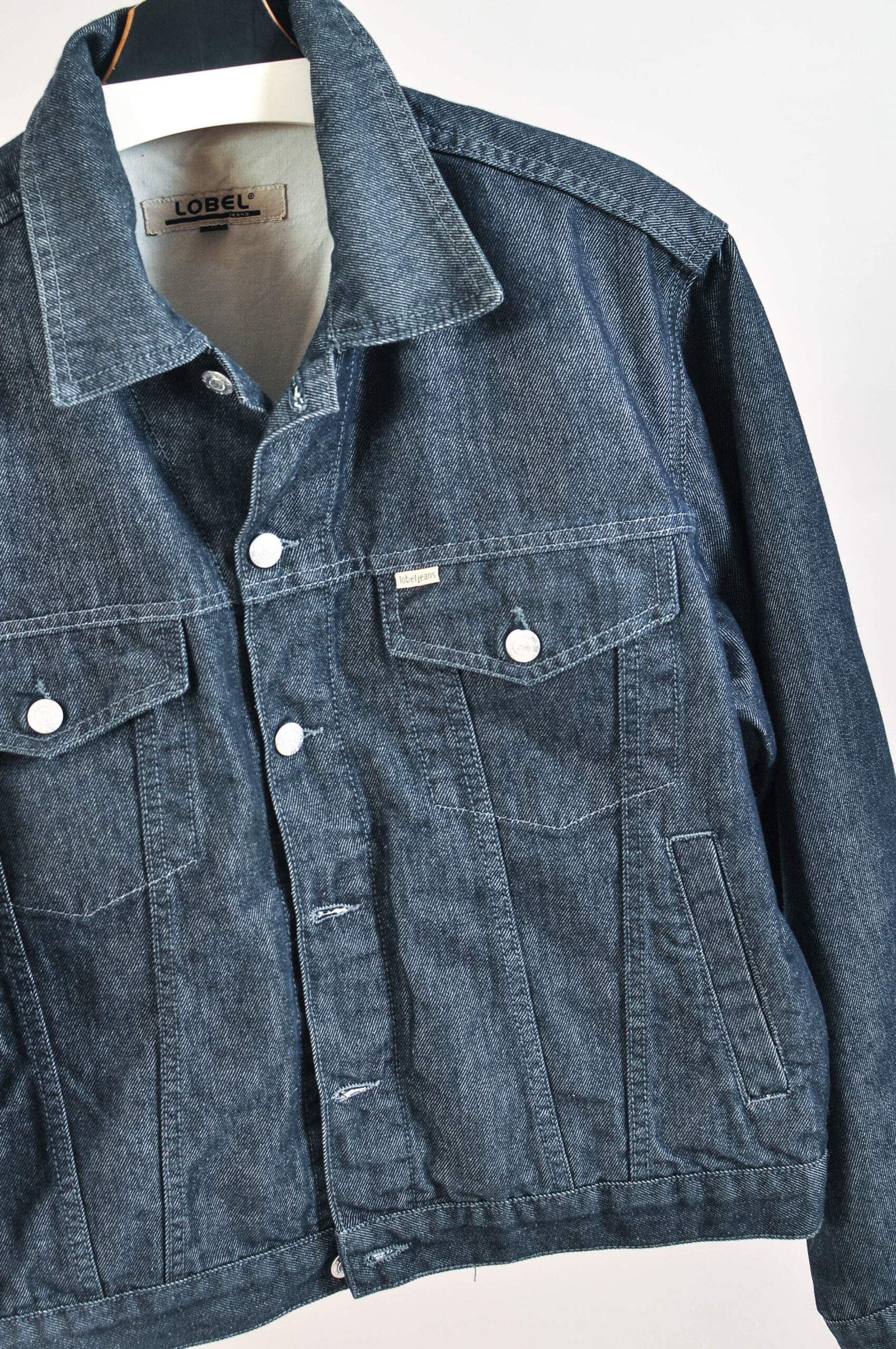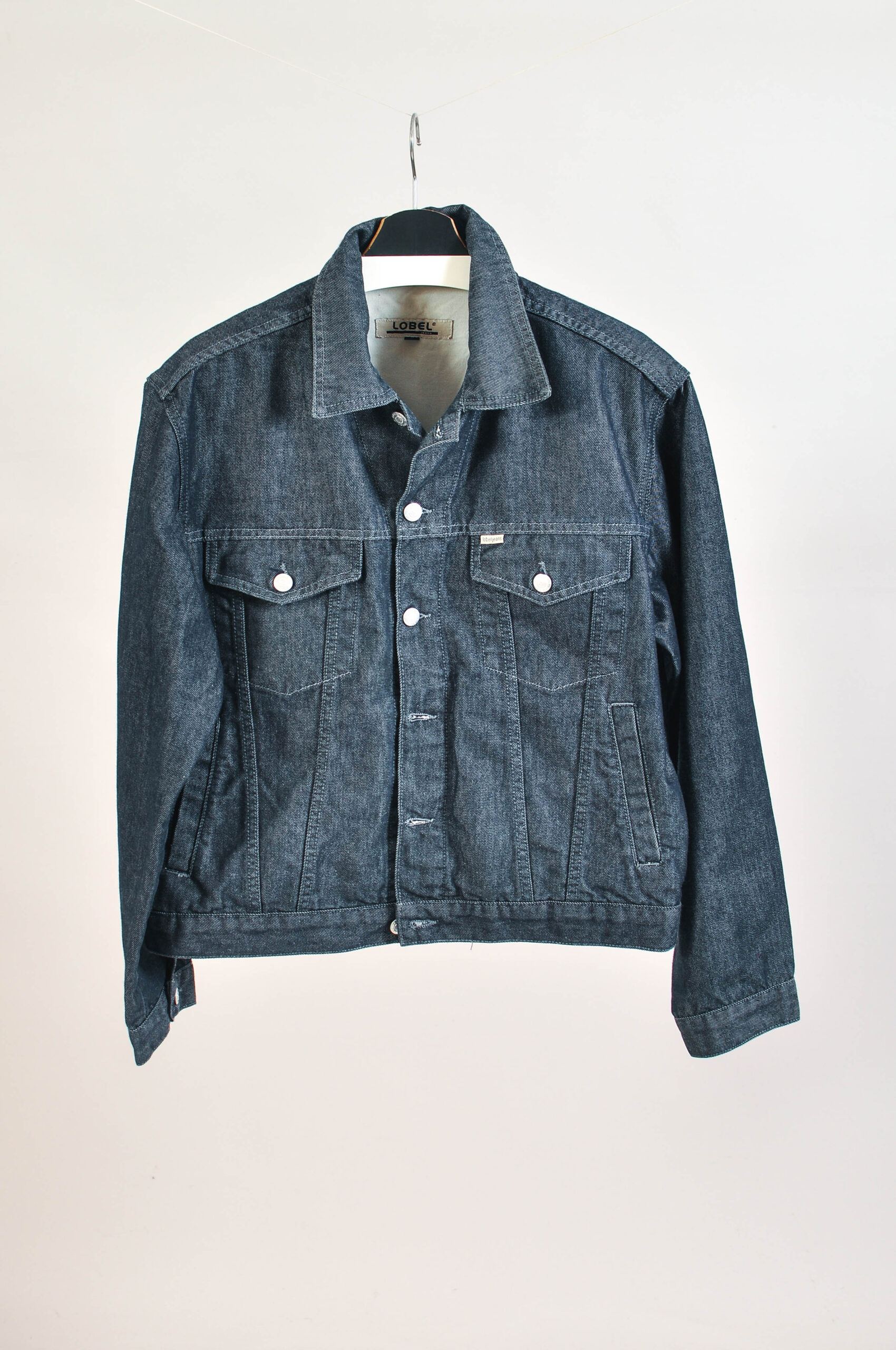 Classic vintage 00s denim jacket by Lobel Jeans featuring a timeless silhouette and durable denim construction. A versatile wardrobe staple that pairs effortlessly with any casual look.