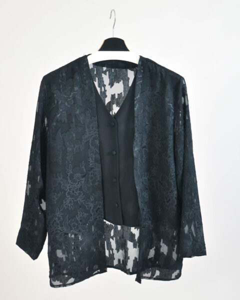 Elegant vintage 00s minimal black blouse by Desiderio featuring a clean and timeless design typical of early-2000s minimalist fashion. Its simple silhouette makes it easy to style for both casual and more polished outfits.