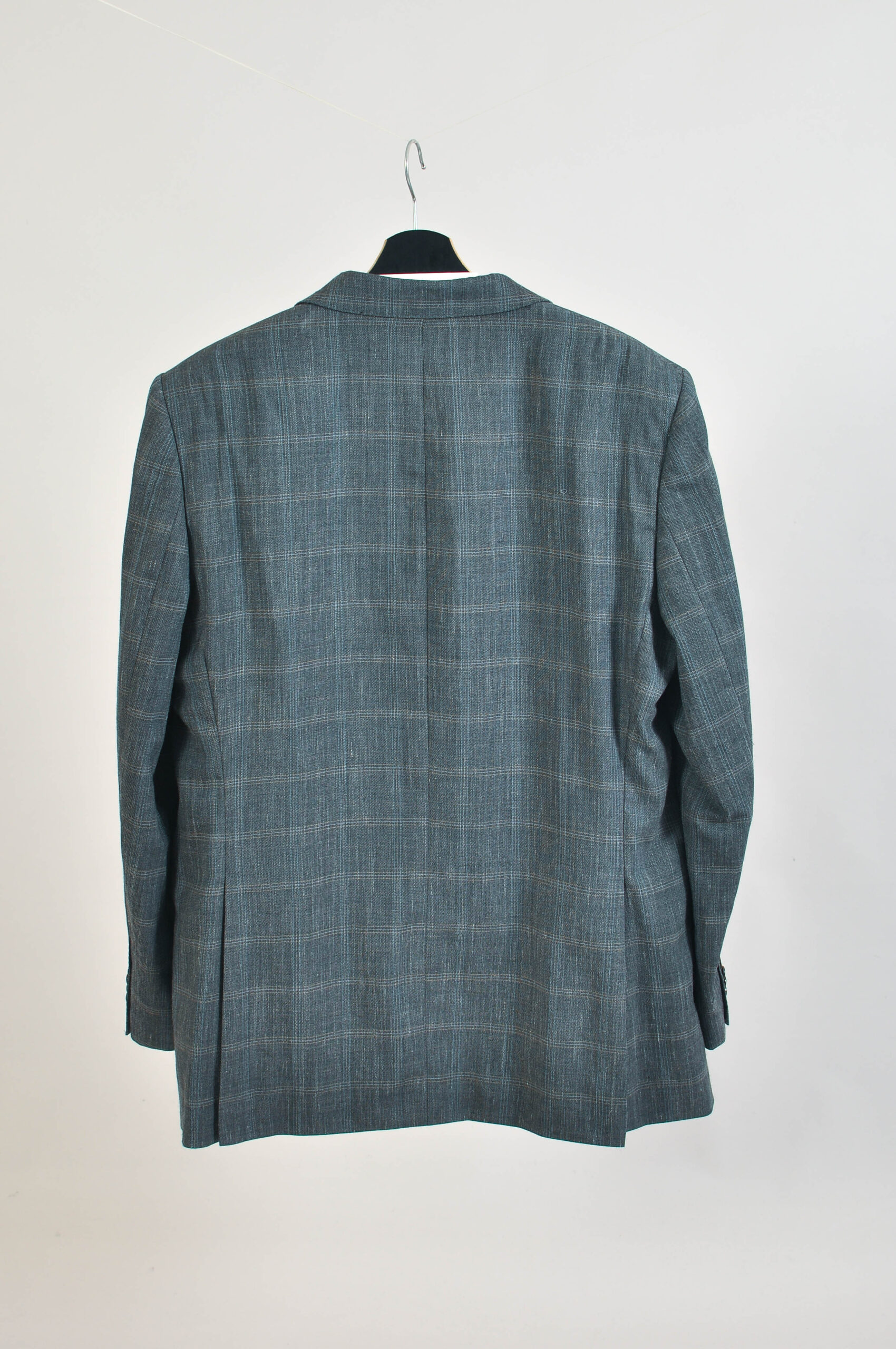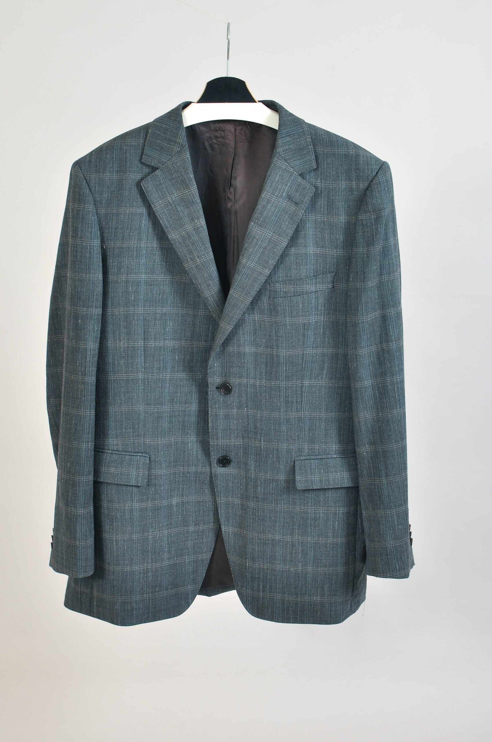 Add a touch of refined vintage tailoring with this Vintage 00s Grey Checkered Blazer Jacket by Peek & Cloppenburg J.D Fielding. Made from a premium wool blend with linen for breathability, this blazer offers both comfort and timeless style.