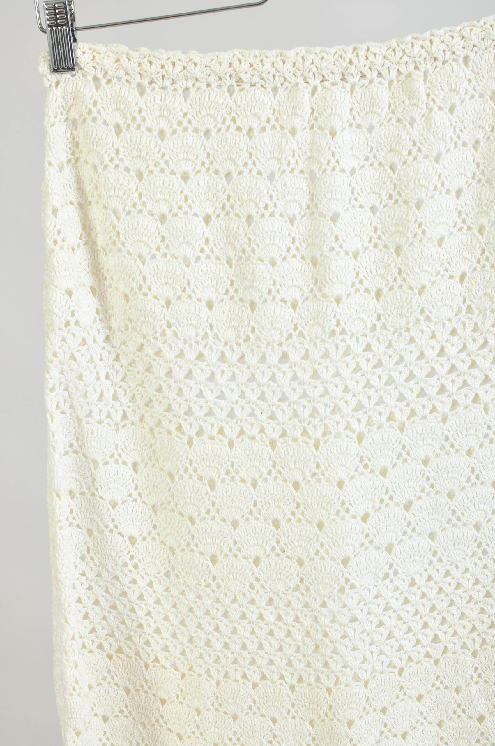 Step into effortless boho chic with this Vintage 00s handmade crocheted midi sheer skirt in white. Made from breathable cotton, this delicate sheer skirt features intricate crochet work and an elasticated waist for a flexible, comfortable fit.