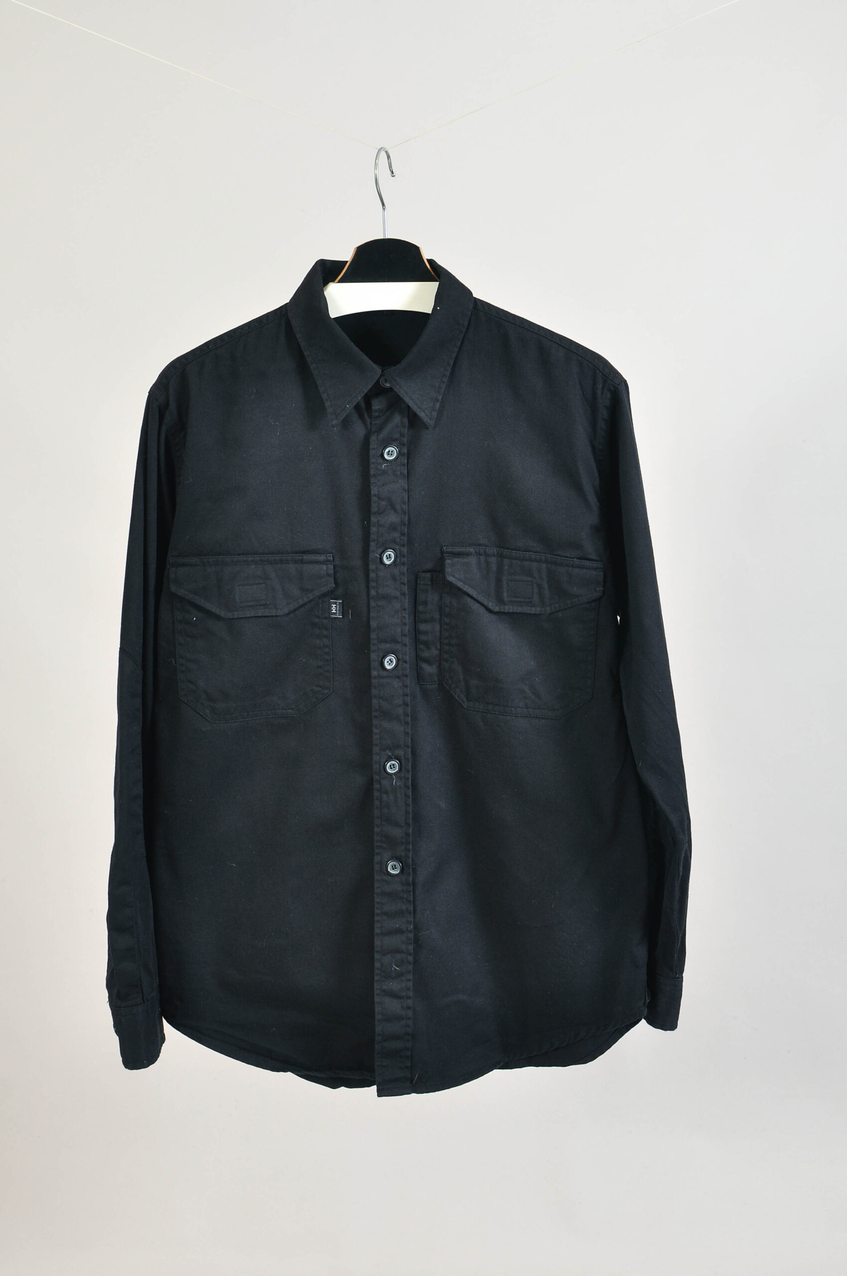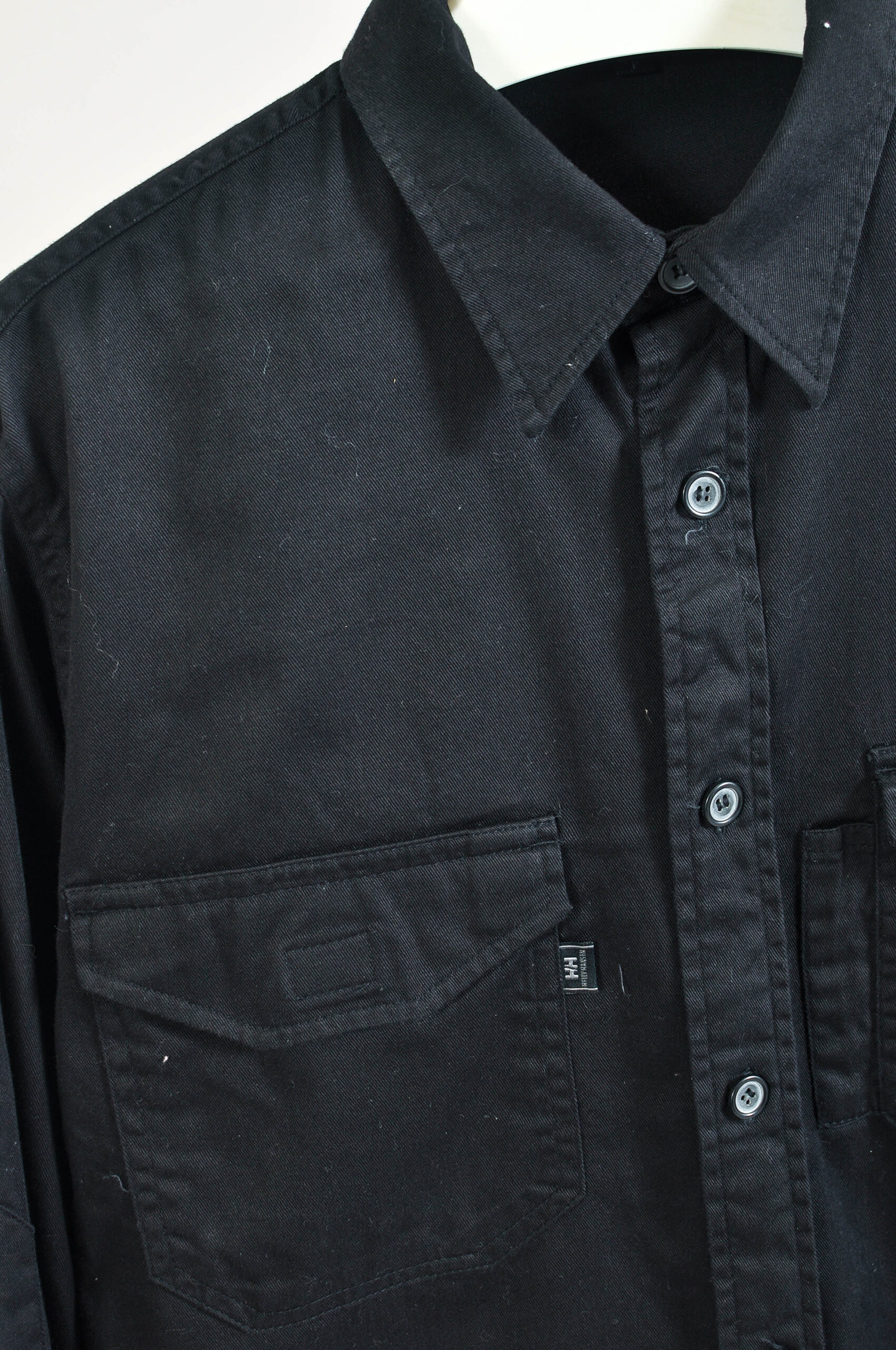 Vintage 00s Helly Hansen black oversized shirt crafted from soft cotton. A timeless classic from the early 2000s, featuring a relaxed, oversized fit perfect for layering or a casual streetwear look. There are natural signs of wear as expected with all vintage clothes.