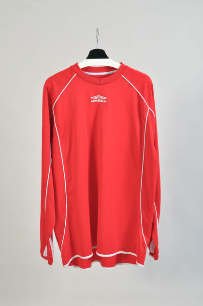 Upgrade your sporty wardrobe with our Vintage 00s UMBRO jersey, a classic piece in very good condition. Displaying the expected signs of natural wear, this jersey exudes a trendy and timeless appeal. Although labeled as size L, it comfortably fits from M to L sizes, featuring measurements of 57 cm from armpit to armpit and 72 cm from neck to hem. Elevate your athletic style with this well-preserved vintage UMBRO jersey from the 2000s.