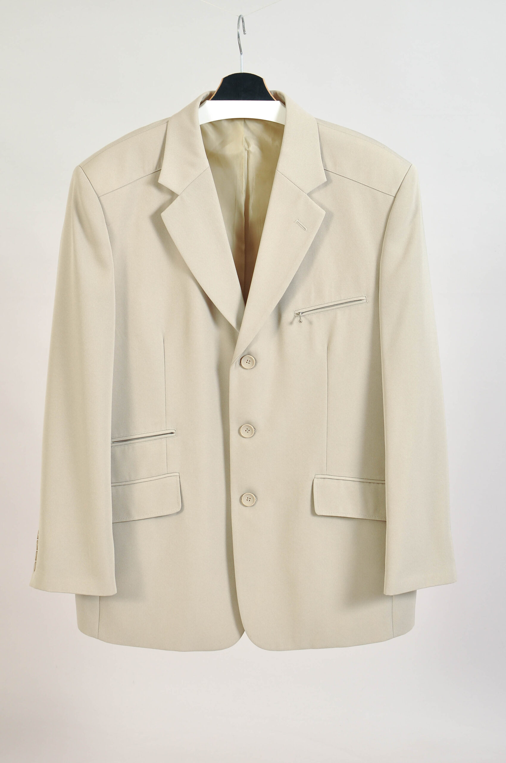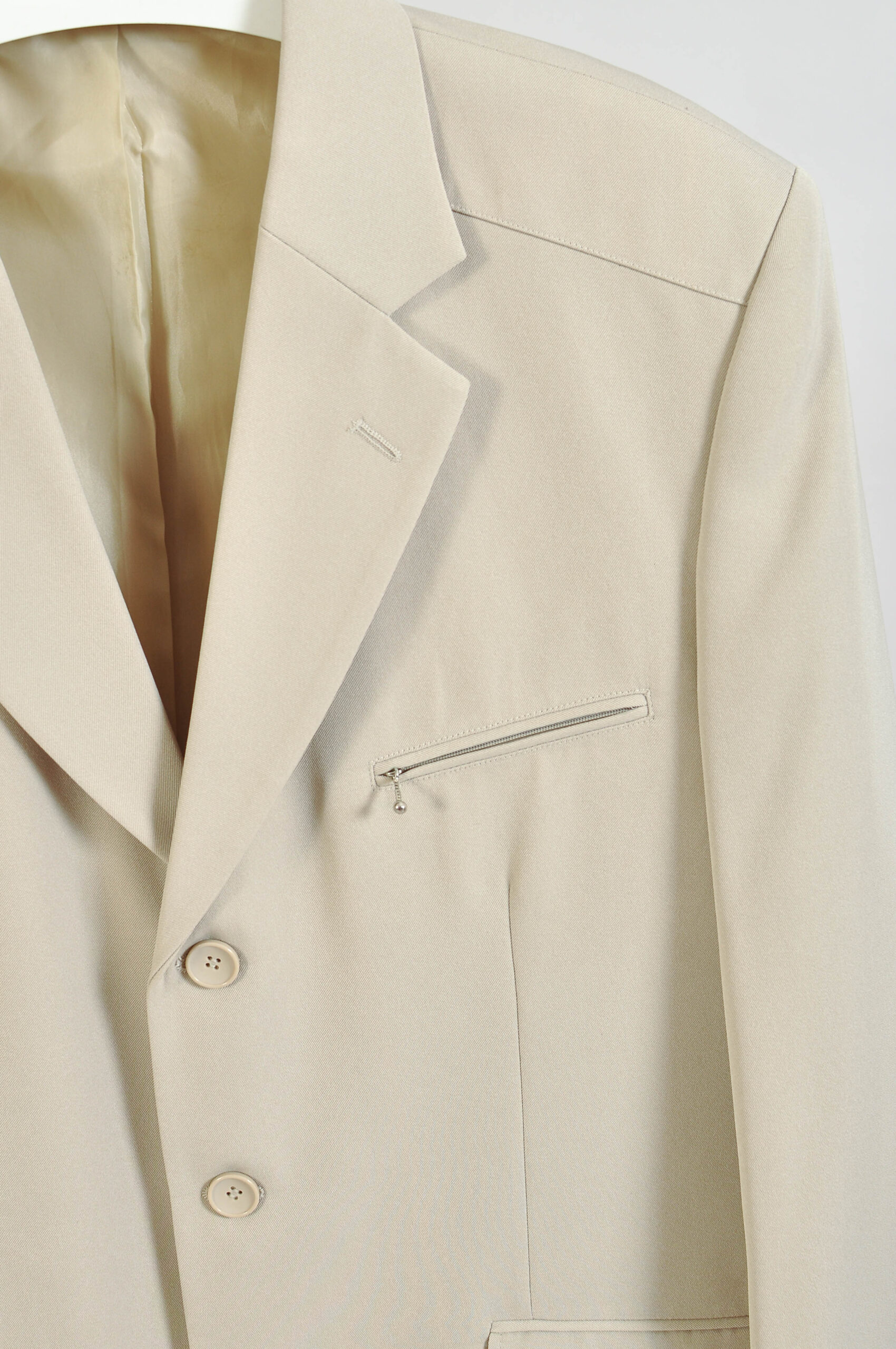 Clean and versatile vintage 00s light beige blazer jacket by Copy Right featuring a classic tailored silhouette and neutral tone that pairs effortlessly with any outfit. Perfect for both smart and casual styling.
