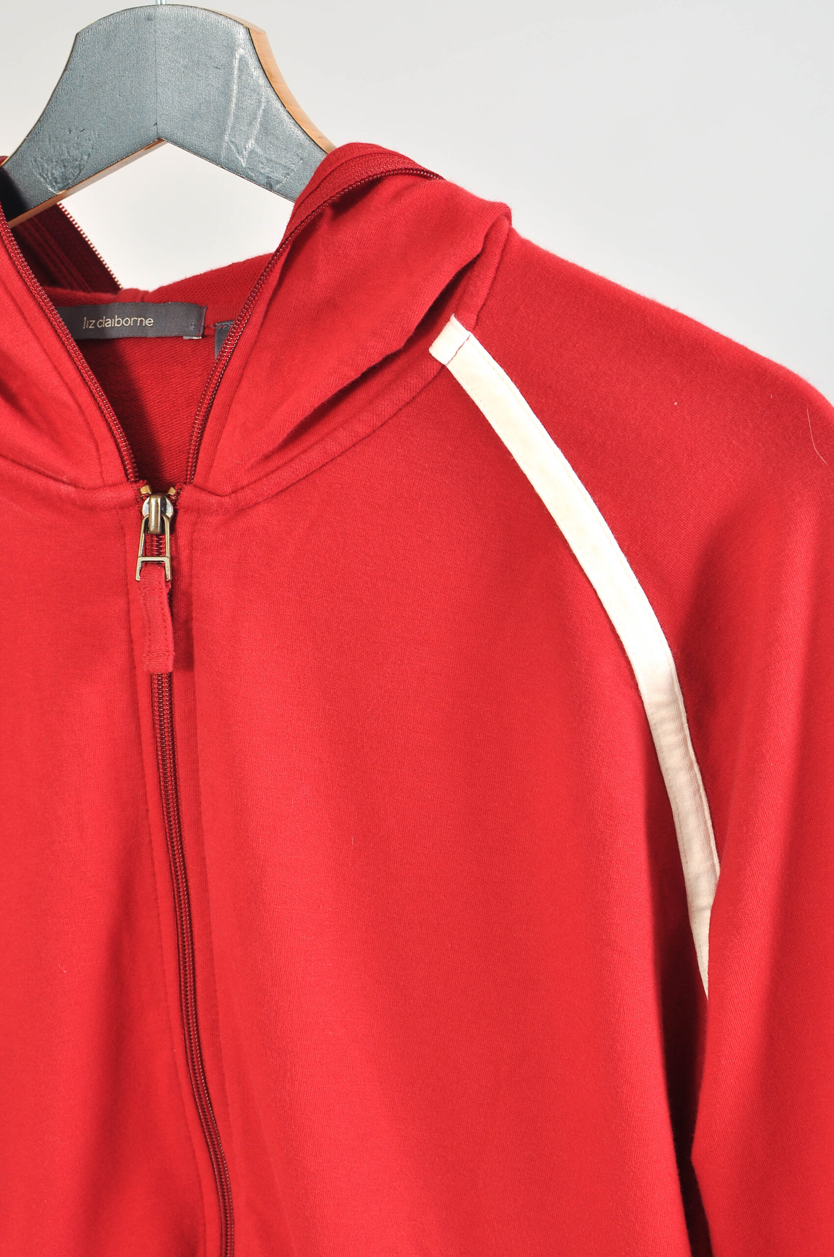 Add a sporty Y2K vibe to your wardrobe with this vintage 00s Liz Claiborne maroon track hoodie jumper. A perfect blend of comfort and retro flair, this zip-up hoodie is ideal for layering year-round. Featuring a deep maroon shade and soft fabric, it’s in very good vintage condition with signs of natural wear typical for its age. Size tag reads XL, and it best fits sizes L to XL—please refer to the measurements for a more accurate fit. A rare find for fans of early 2000s athleisure.