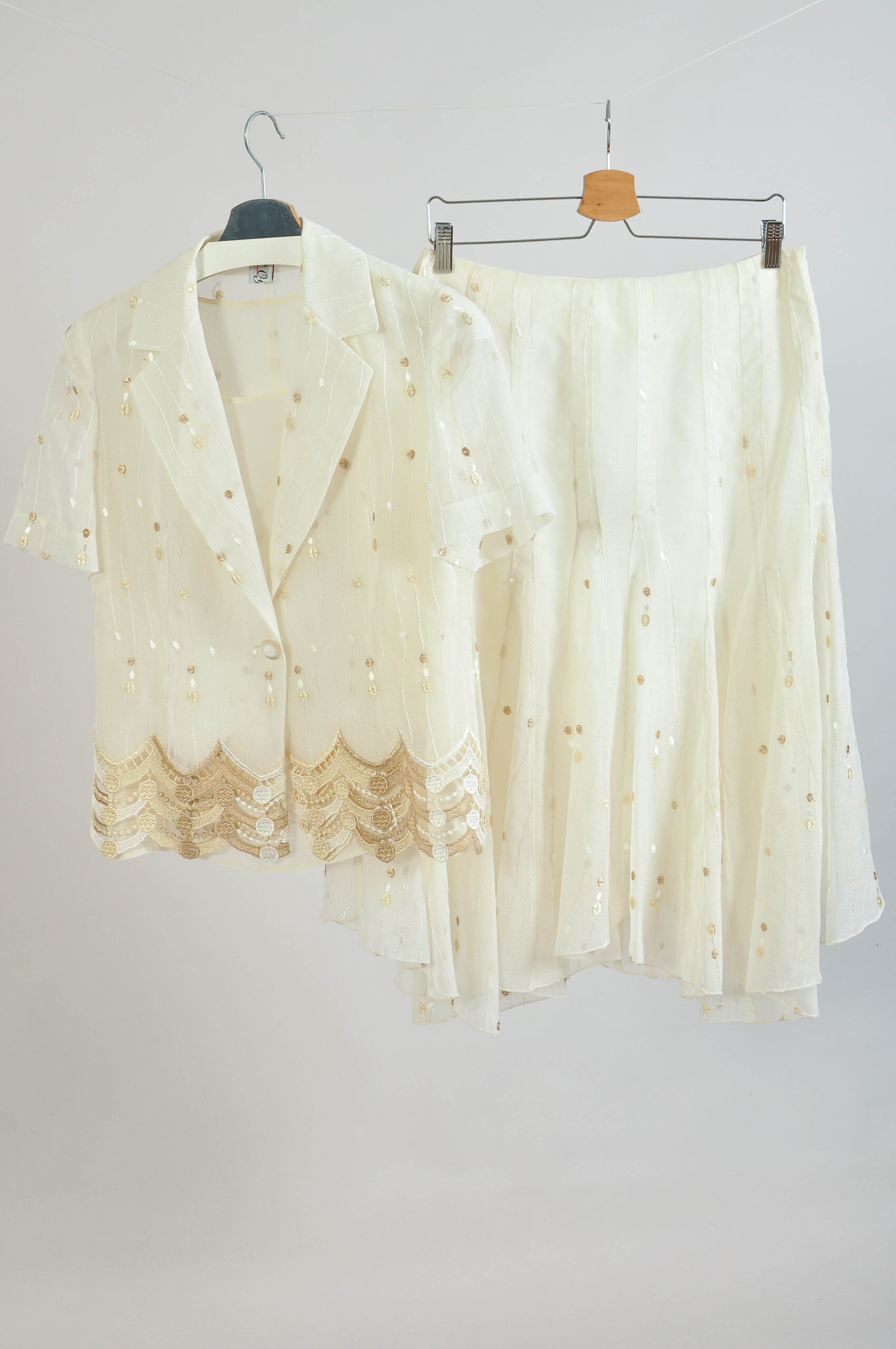 Vintage 00s Off-White Chiffon Skirt Suit Co-Ords – Size 40