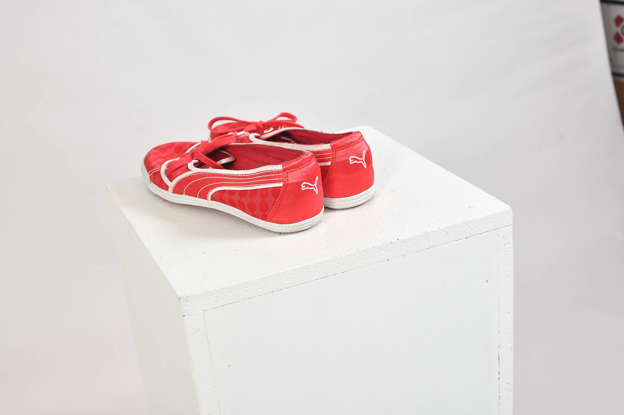 Step back into the early 2000s with these stylish vintage Puma ballet shoes. Featuring a sleek and sporty design, they’re a perfect blend of comfort and retro flair.