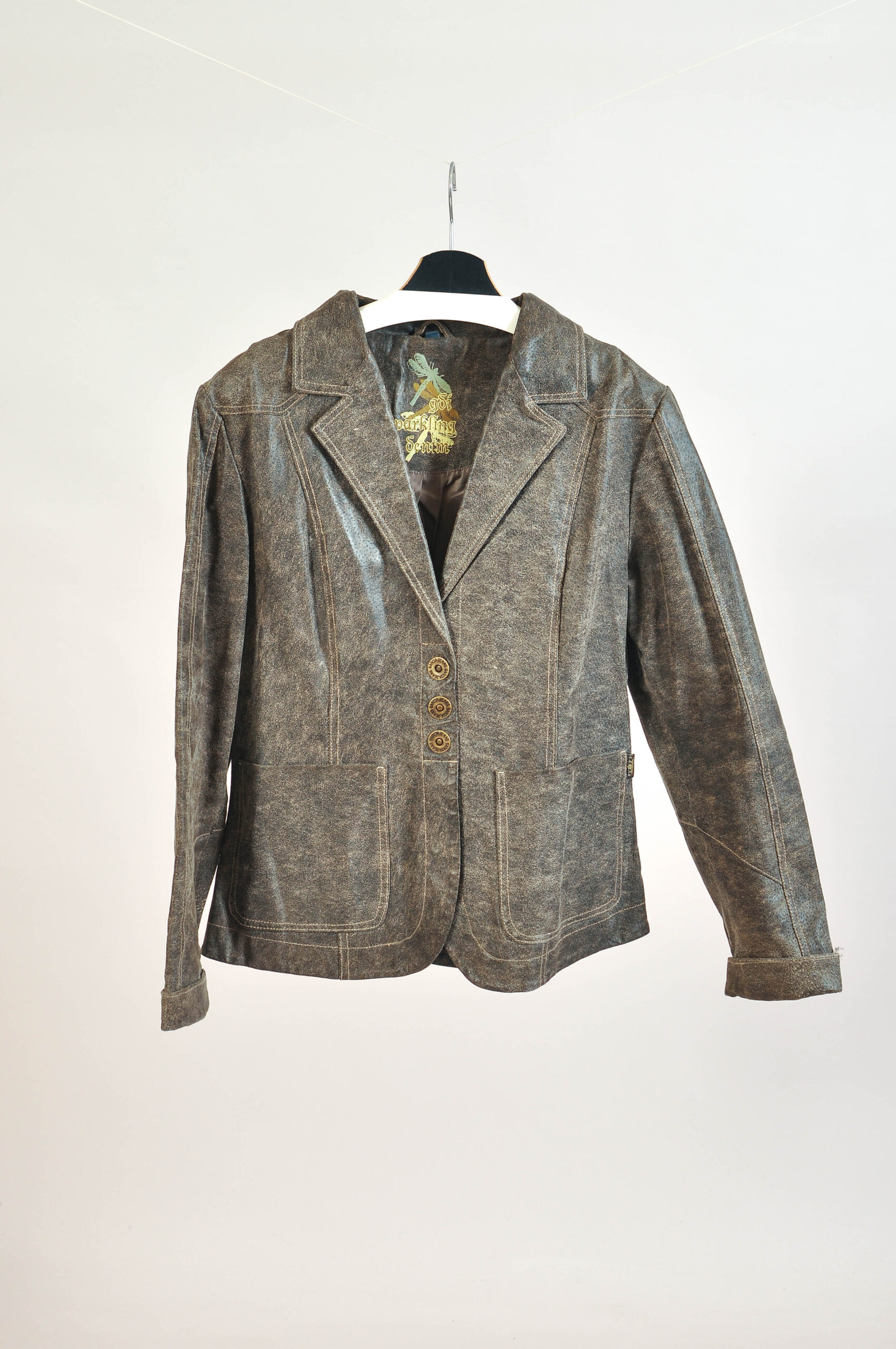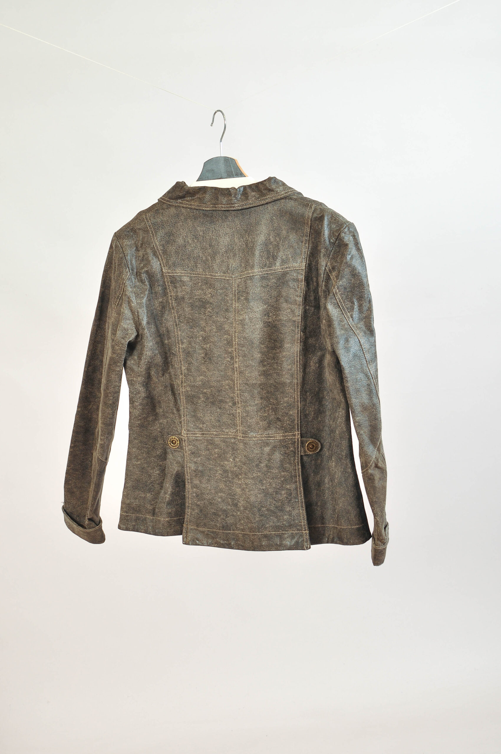 Classic vintage 00s real leather jacket crafted from pig leather, featuring a clean and versatile design. A timeless outerwear piece that adds an effortless edge to any outfit.