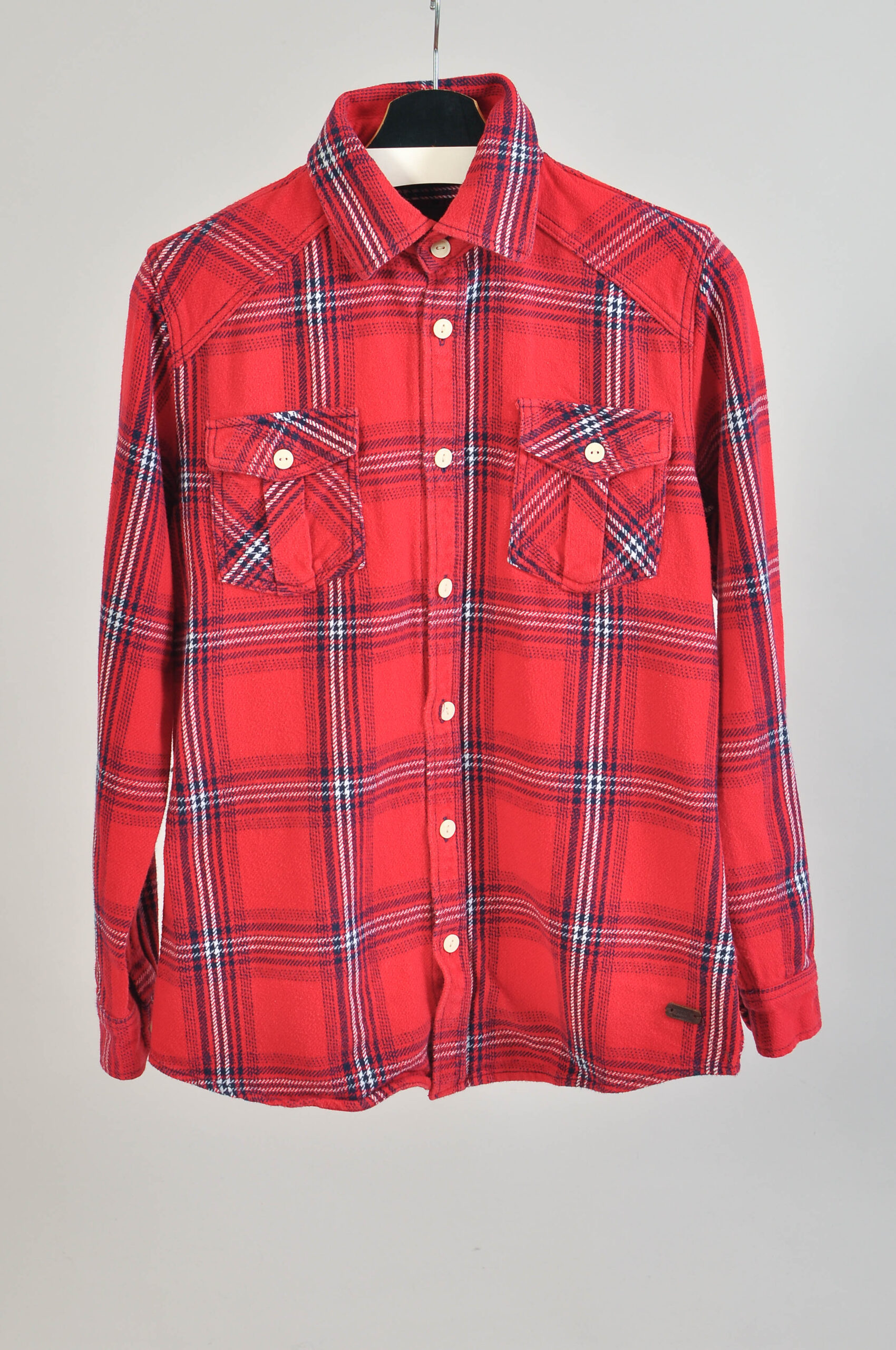 Vintage 00s Red Checkered Flannel Shirt – Size S –