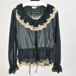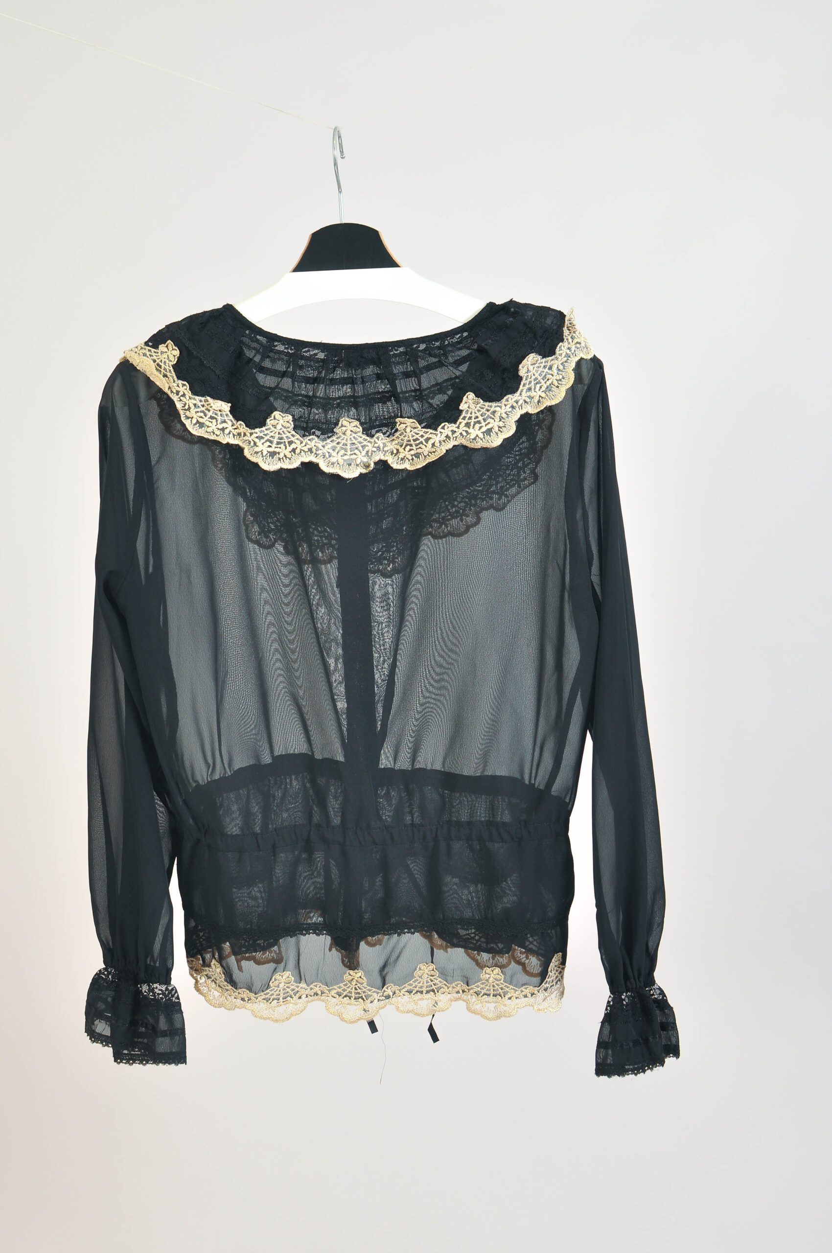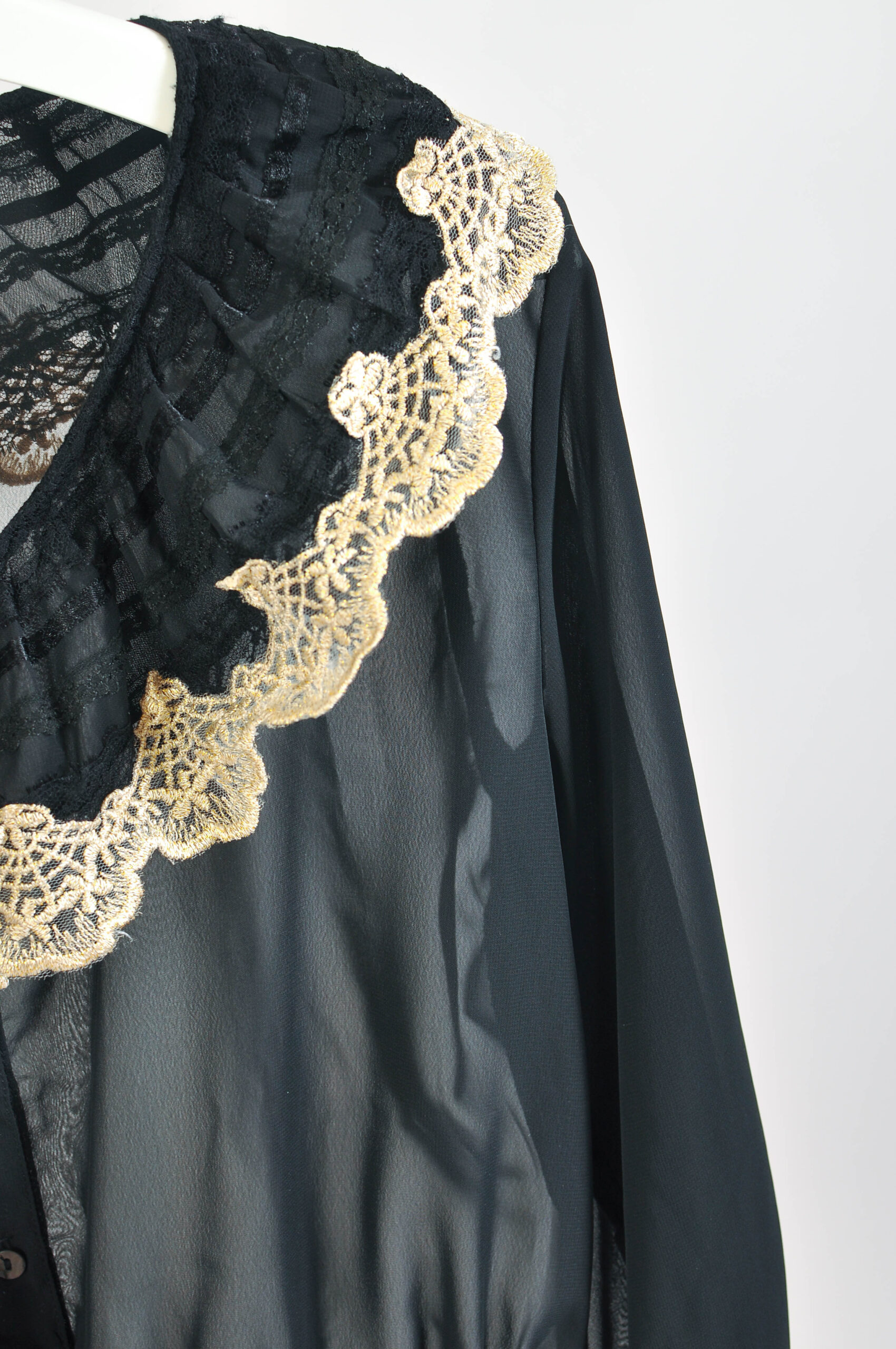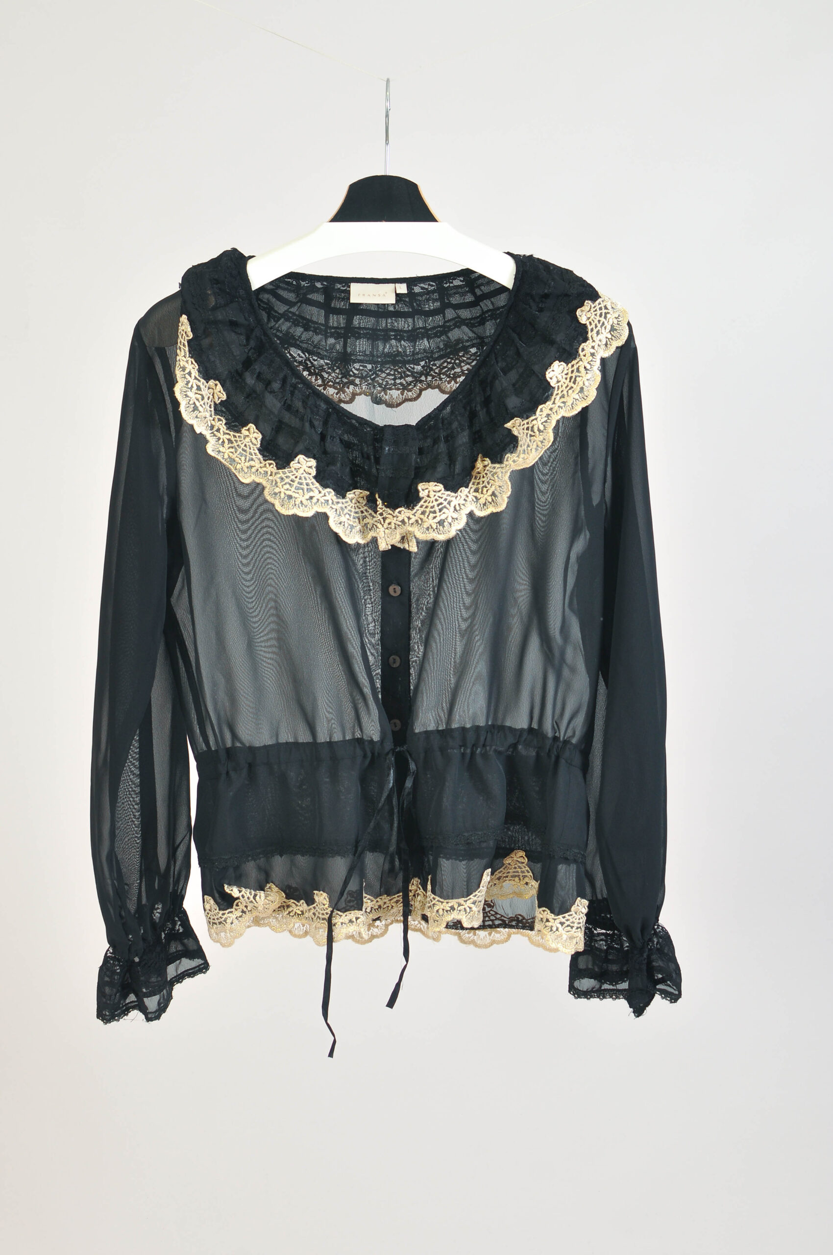 Vintage 2000s Sheer Ruffle Blouse – Black | Size L (Fits M-L)