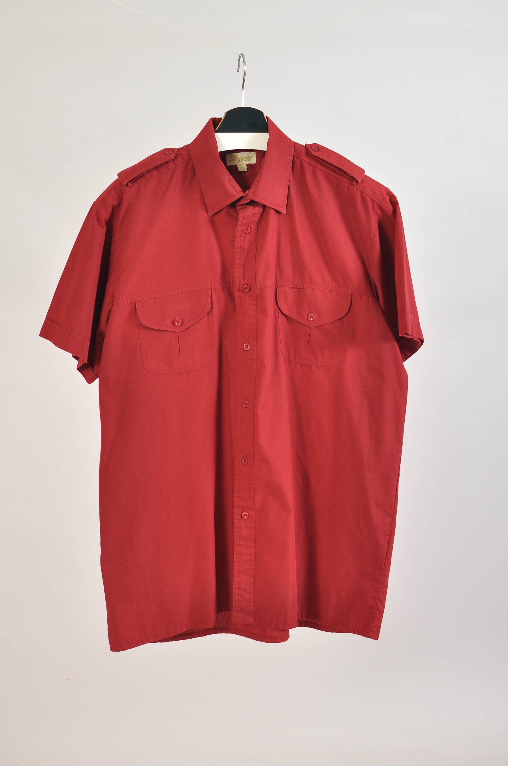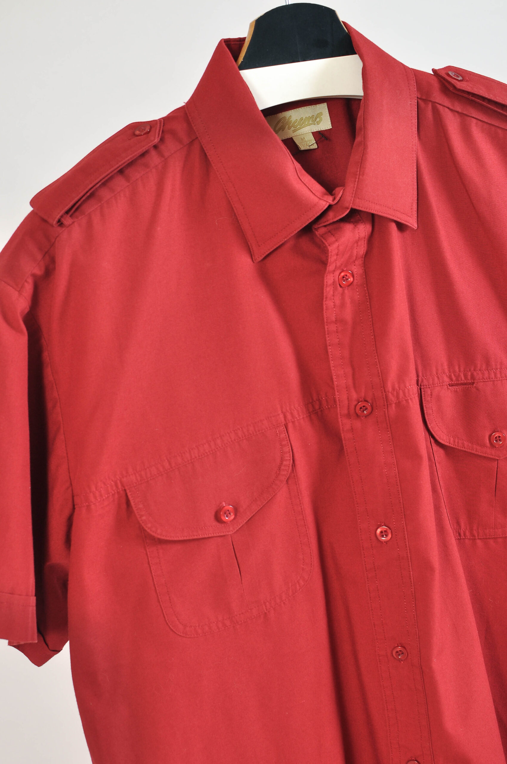 Classic vintage 00s short sleeve maroon shirt by Cheems featuring a relaxed fit and rich deep tone. A versatile casual piece that adds subtle color and effortless vintage style to any wardrobe.