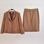 Authentic vintage 00s brown skirt suit featuring a classic tailored jacket and matching skirt. Designed in a timeless early-2000s silhouette, this coordinated set is perfect for office wear, formal occasions, or refined vintage styling.