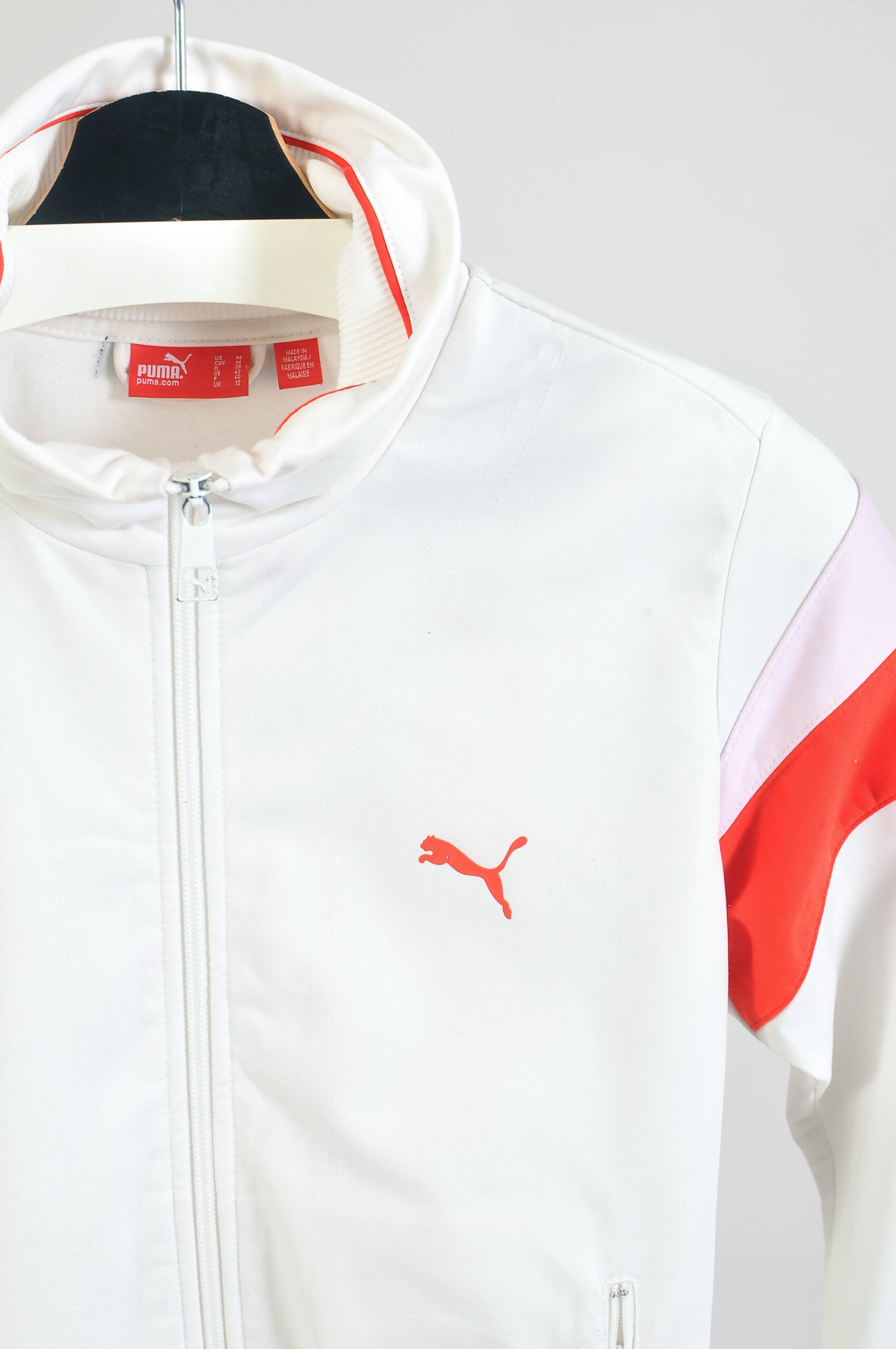 Vintage 00s Puma white zip up sweatshirt. Sporty Y2K design with classic Puma logo.
