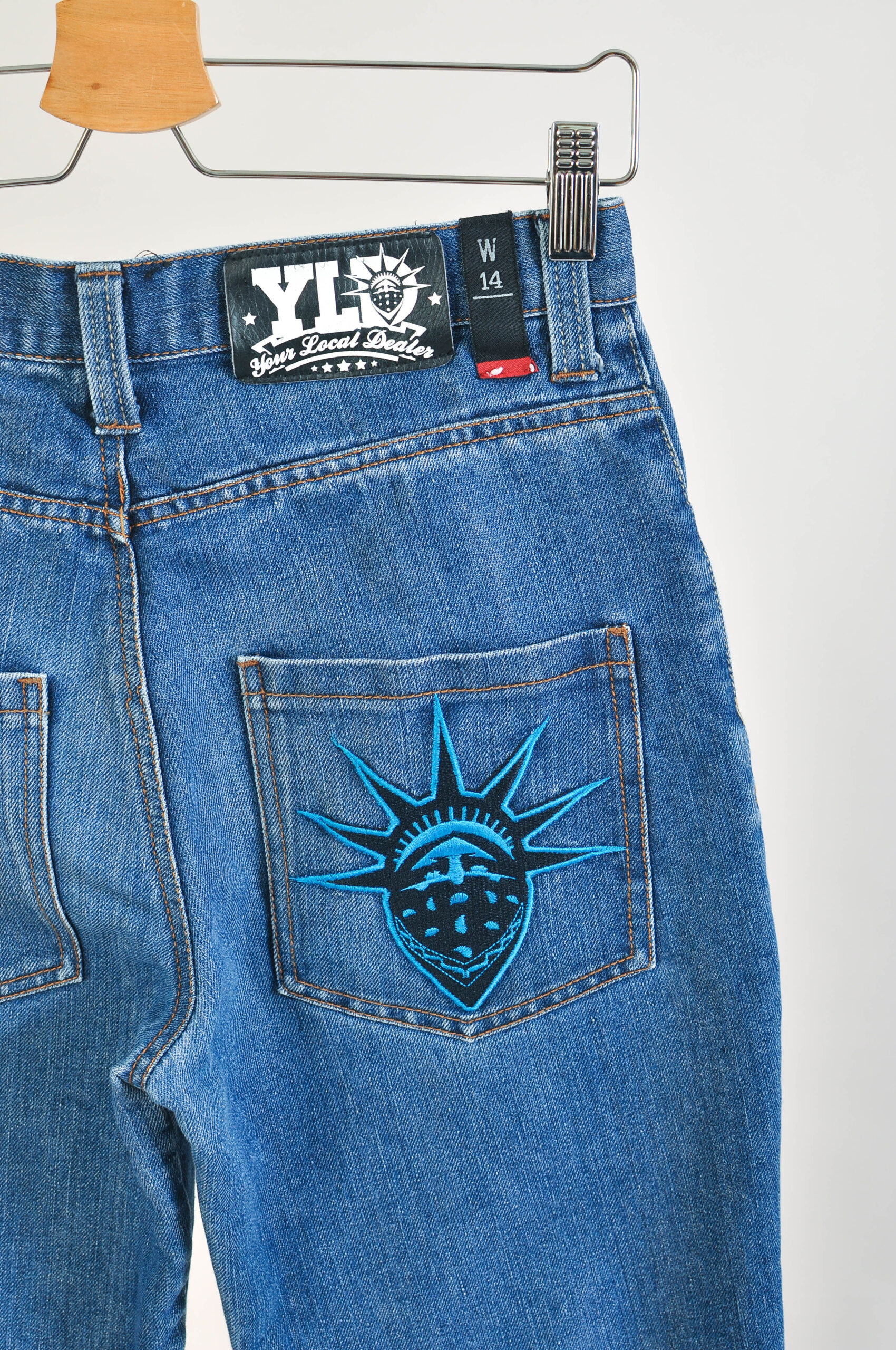 Vintage 00s YLD Your Local Dealer jeans in a timeless blue wash — a perfect throwback to early 2000s street style. Features a flattering fit and soft worn denim look. There are signs of natural wear as to be expected with all vintage clothes.
